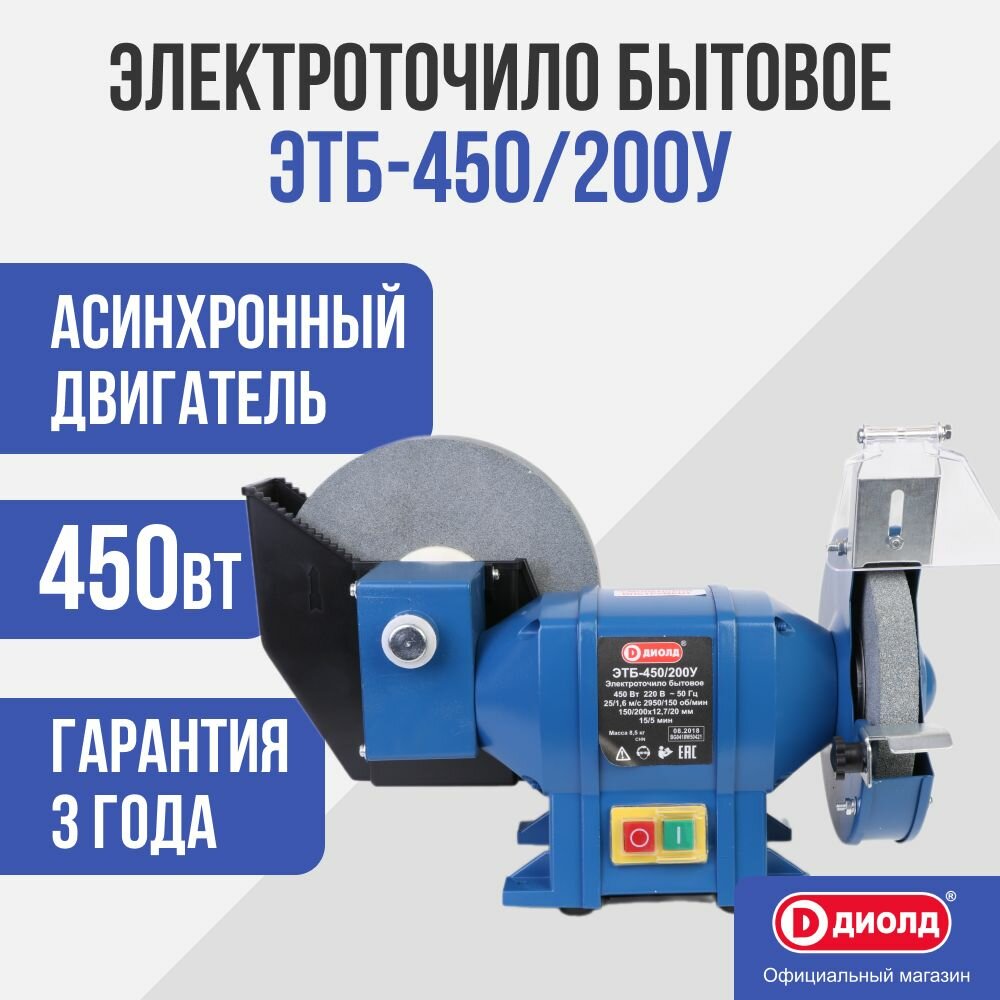 Электроточило ЭТБ-450/200 у отличается высокой мощностью двигателя 450 Вт, способно эффективно затачивать режущие инструменты, шлифовать разные изделия, зачищать сварные швы и выполнять многие другие работы. Электроточило стоит использовать при температуре от -5 до +35 °C. Инструмент питается от стандартной сети на 220 В.