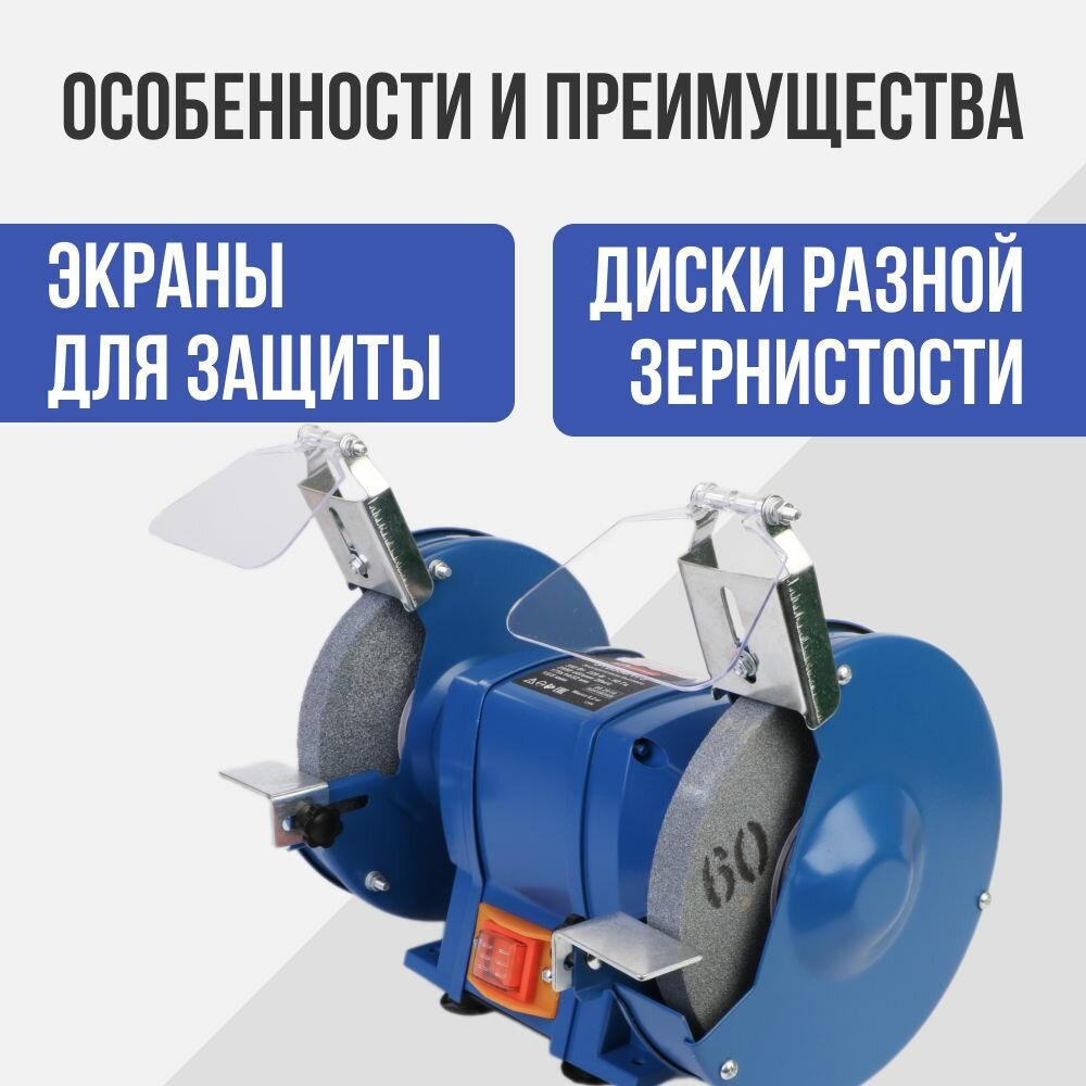 Электроточило работает от сети переменного тока напряжением 220 В, частотой 50 Гц.