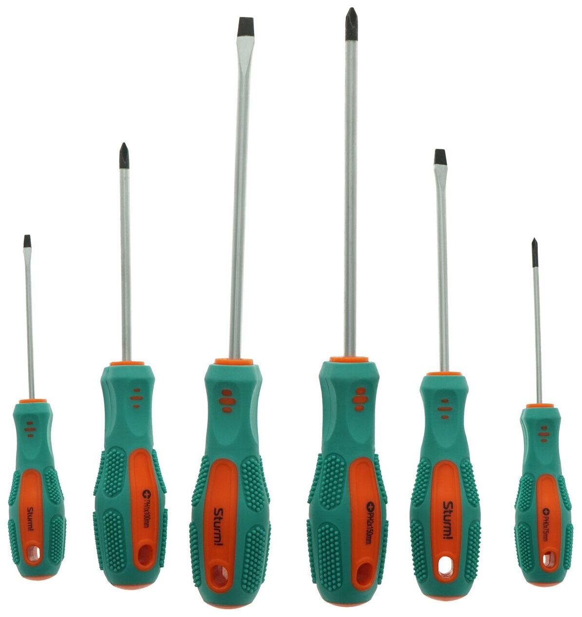 Набор отверток пригодится при работе любому мастеру: и профессионалу, и любителю. В комплекте может быть собрано все, что нужно для выкручивания и закручивания различного крепежа: крестовые и прямые отвертки, наборы бит и держатели к ним. Каждый сможет подобрать подходящий набор для себя или в подарок. Набор отверток 6 штук Sturm! предназначен для монтажа и демонтажа резьбовых соединений.