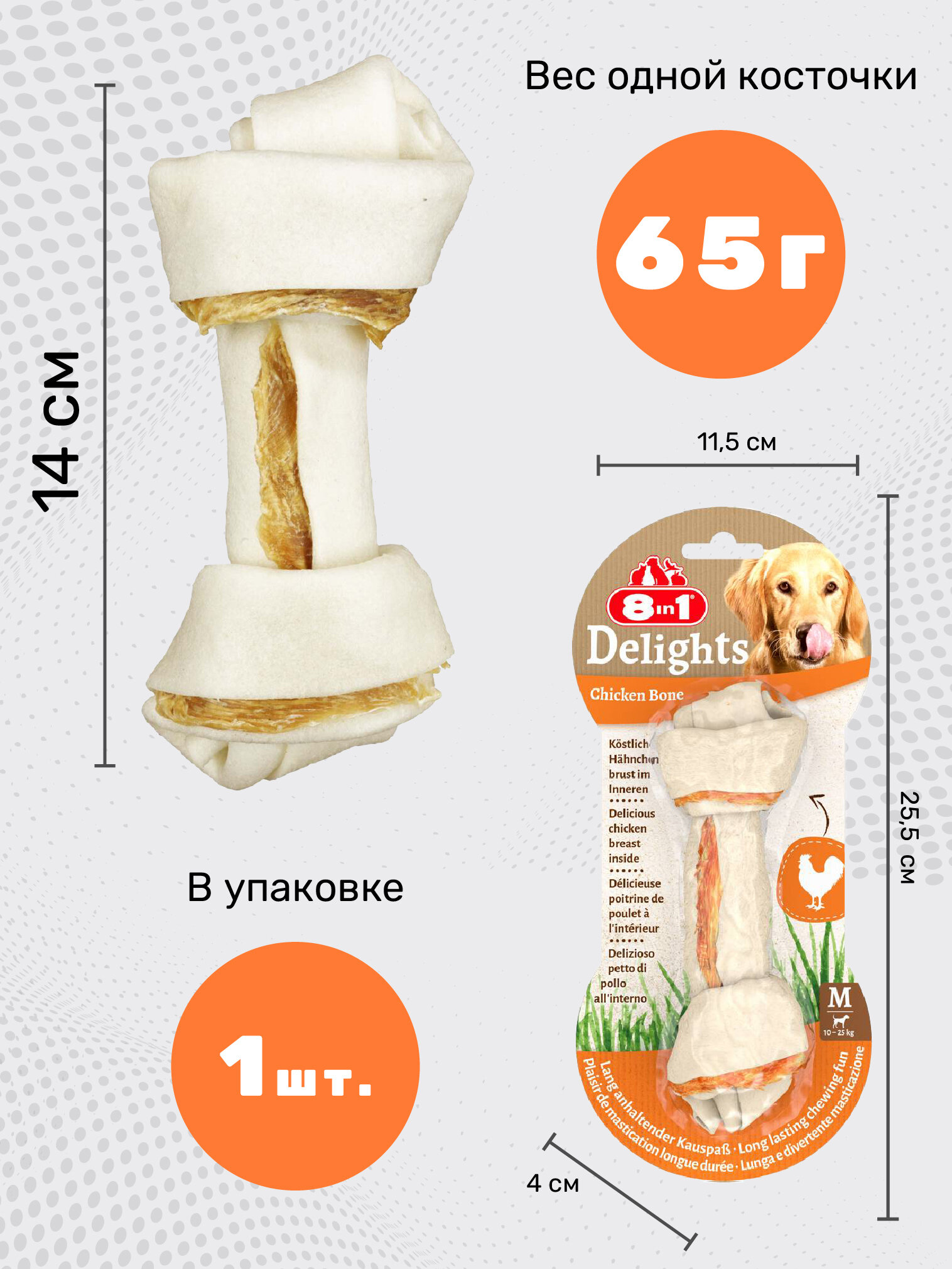 Лакомство 8in1 для взрослых собак Delights M косточка с куриным мясом для средних и крупных собак 14.5 см курица (102434)