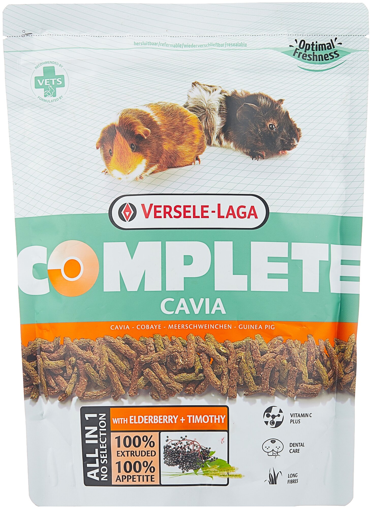 Полнорационный корм, соответствующий природным потребностям и вкусовым предпочтениям морских свинок. Легкоусваиваемые и экструдированные гранулы корма содержат все необходимые для здоровья этих маленьких животных микроэлементы – витамины и минералы, белки, жиры и клетчатку, что делает VERSELE-LAGA Cavia Complete не только невероятно вкусным, но и полезным!