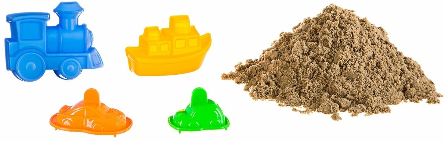 Набор для игры детям от 3-х лет. В комплекте: песок и набор формочек. Песок пластичен,не высыхает, не рассыпается и не пачкается. Игры с ним займут ребёнка ,принесут ему массу положительных эмоций и новых тактильных ощущений. Песок- отличный материал для детского творчества, для развития фантазии и воображения. В набор входят красочные формочки. Песок способен повторить их правильные и ровные формы. Даже зимой или в плохую погоду, ребенок сможет играть в любимые игры в маленькой домашней песочнице!