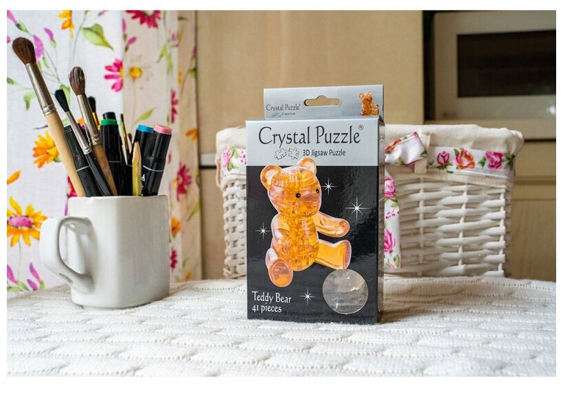 Кристальный медвежонок чудесного карамельного оттенка обязательно придется по душе детям и взрослым. Такую объемную фигурку может собрать каждый благодаря 3D-пазлам Crystal Puzzle. Мишка состоит из множества фигурных элементов разных форм и размеров. Подбирая детали друг к другу в правильном порядке, вы соберете прочную и красивую композицию. Все наборы Crystal Puzzle сертифицированы для продажи в России. Они снабжены информацией и инструкцией на русском языке, а все комплектующие проходят обязательную проверку. Наборы подходят для корпоративных подарков и сувениров, а также продажи в магазинах игрушек и хобби.