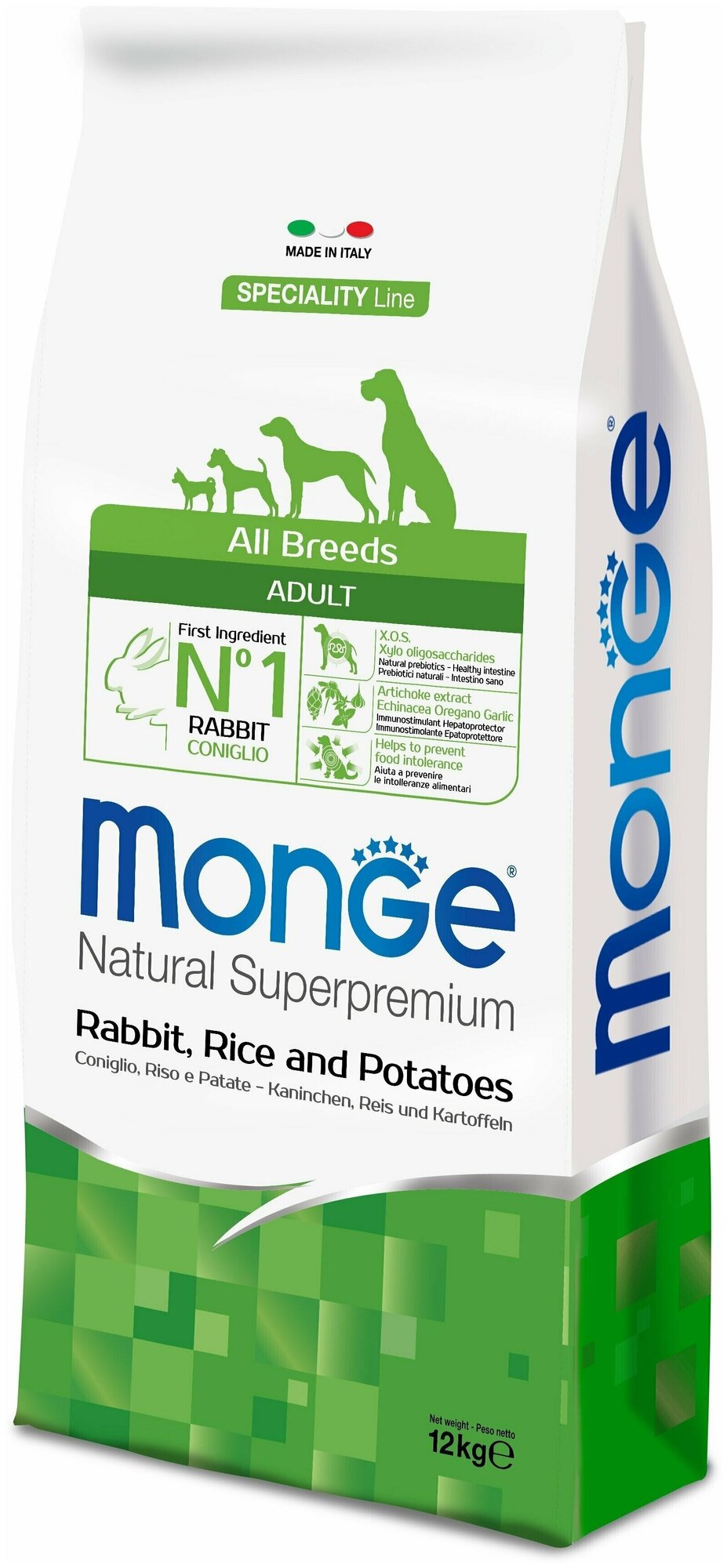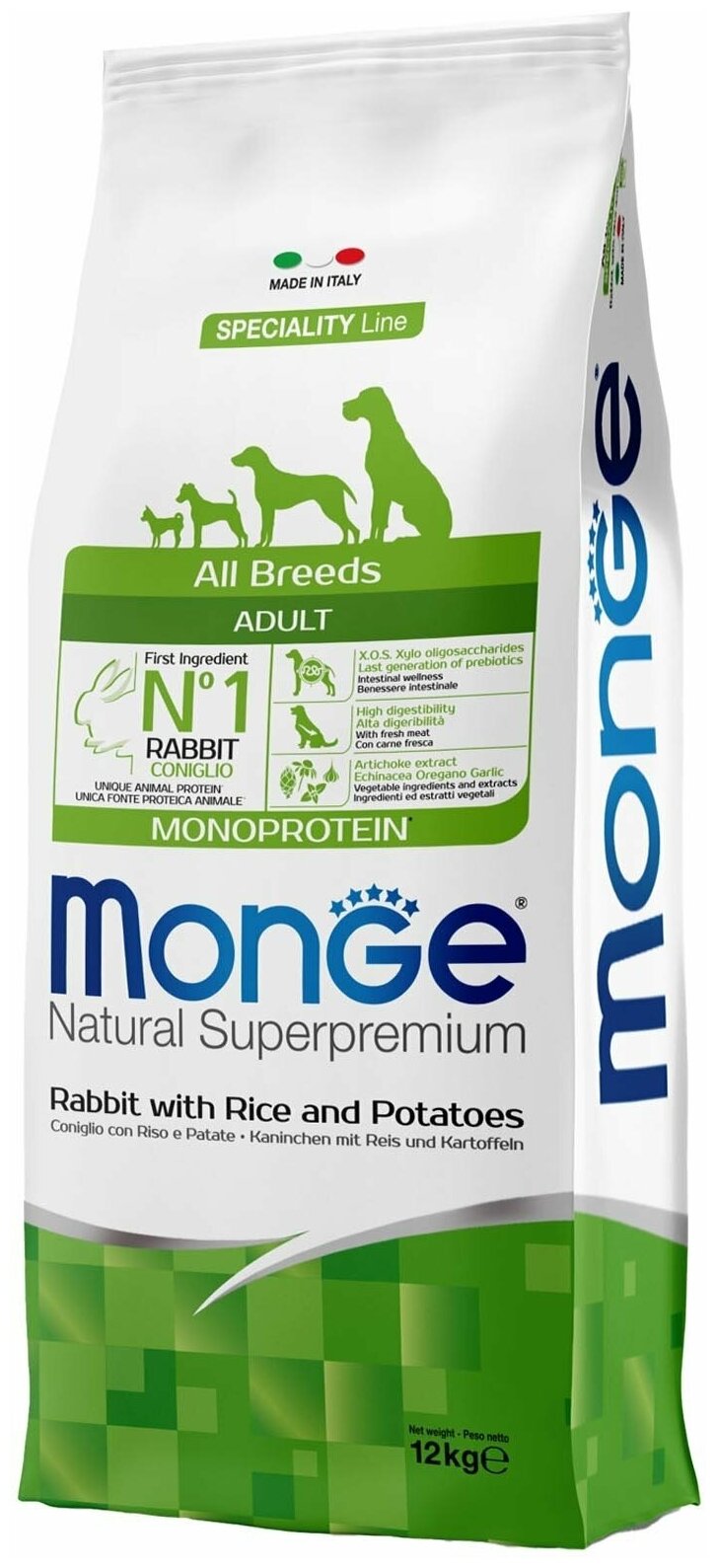 Сухой корм Monge Speciality для взрослых собак всех пород кролик с рисом и картофелем 12кг Speciality Adult