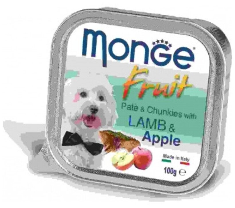 Влажный корм Monge Fruit для взрослых собак ягненок с яблоком 100г Dog Fruit Lamb