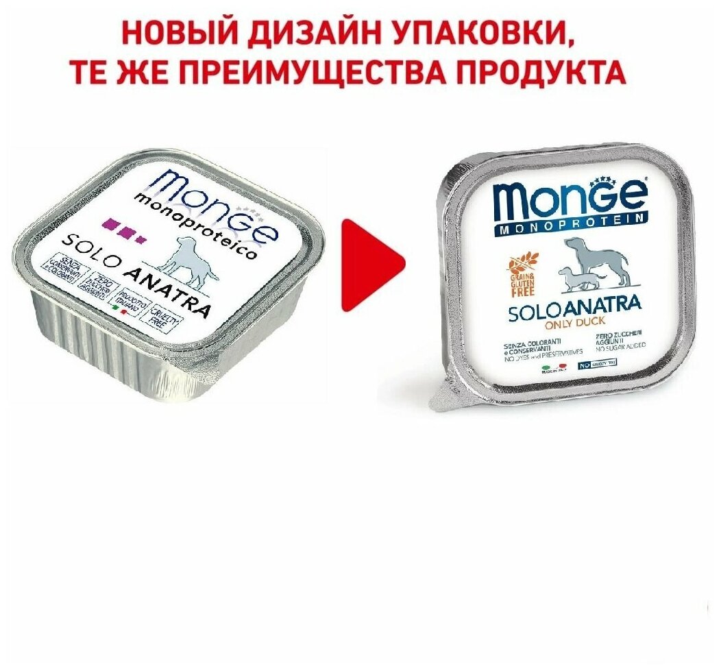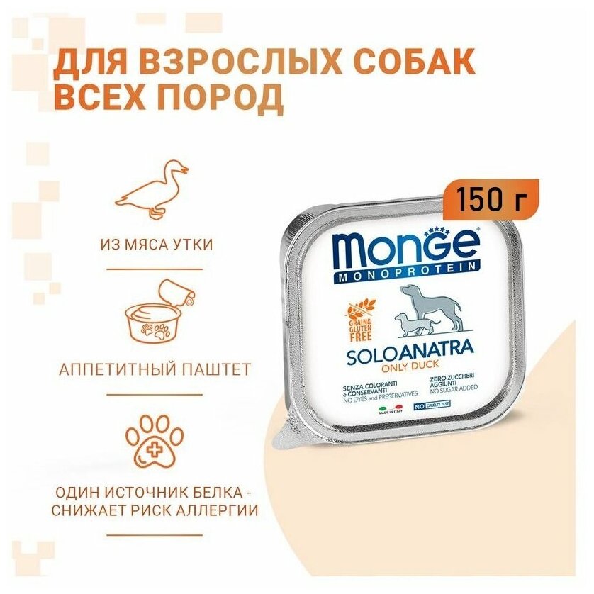 Влажный корм Monge Monoproteico для взрослых собак Solo консервы для собак утка 150г Dog Monoproteico Solo Duck