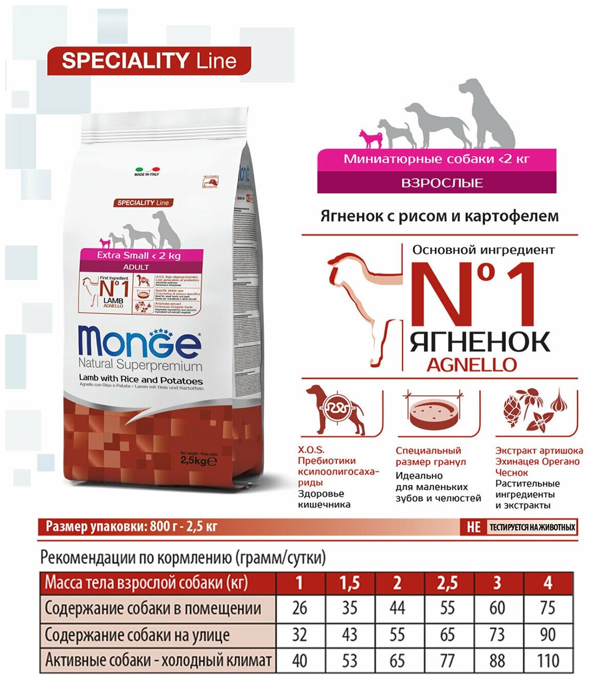Сухой корм Monge Speciality Extra Small для взрослых собак миниатюрных пород ягненок с рисом и картофелем 800г (70011471)