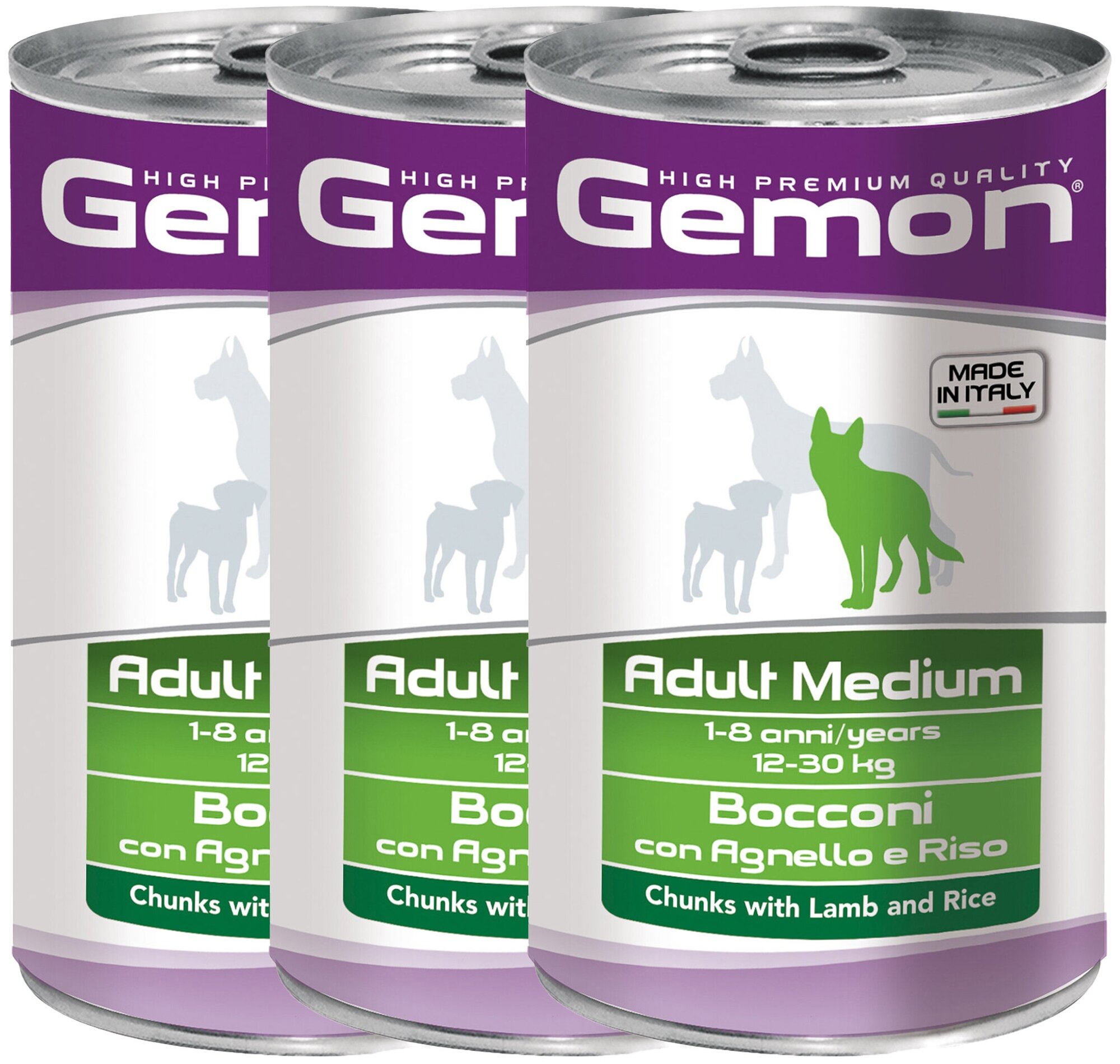 Полноценный консервированный корм для собак с кусочками ягненка и рисом. Специально разработан для ежедневного кормления взрослых собак средних пород (12-30 кг) с нормальной физической активностью в возрасте 1-8 лет. Подавать корм комнатной температуры или подогретый. Важно, чтобы животное всегда имело доступ к чистой, свежей воде. Суточная норма для взрослых собак средних пород (12-30 кг) составляет 880-1800г продукта, порция должна быть разделена на 2-3 приема пищи.