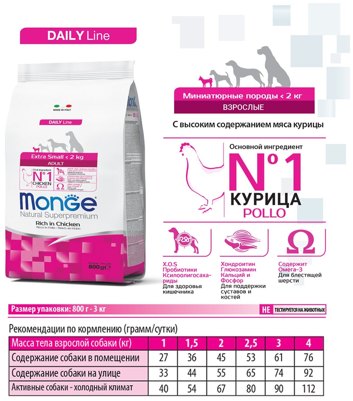 Сухой корм Monge Extra Small для взрослых собак миниатюрных пород курица 800г (70011419)