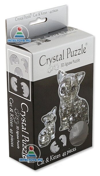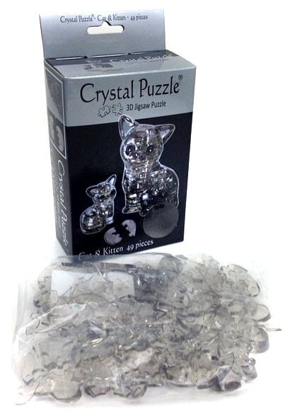 В этом наборе Crystal Puzzle сразу две объемные фигурки! Взрослая кошка и ее маленький котенок собираются отдельно, но образуют единую композицию. Ваша задача – определить, какой из фигурок принадлежат полупрозрачные детали, и соединить их в правильном порядке. Не забудьте, что решать головоломку нужно в трех измерениях! Кристальные котики красивого дымчатого оттенка станут украшением коллекции 3D-пазлов, хорошим подарком или заметной деталью в интерьере. Данная модель пользуется постоянной популярностью у наших покупателей, так как ее интересно собирать, а готовый результат вызывает много положительных эмоций.