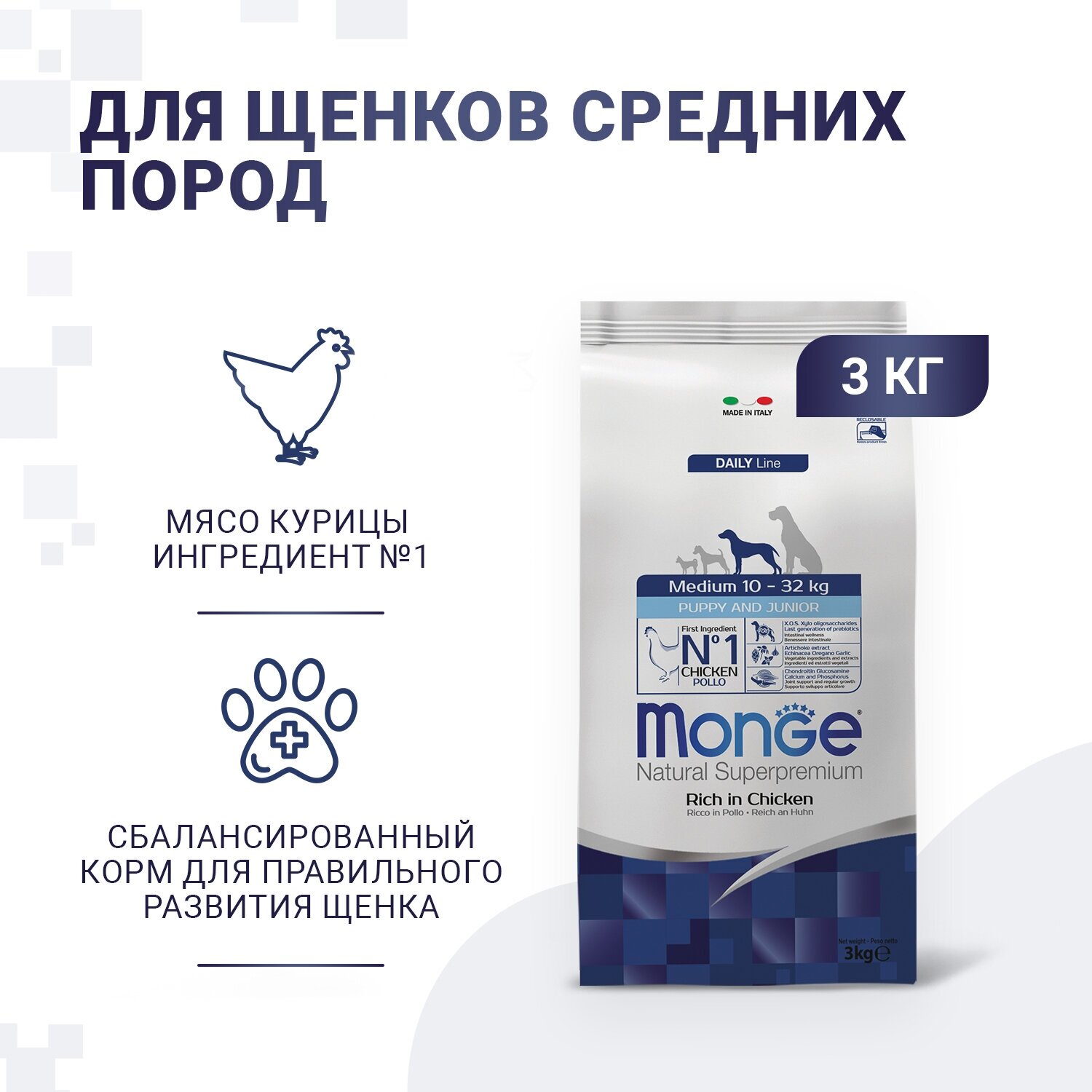 Сухой корм Monge Medium для щенков средних пород курица 3кг (70004220)