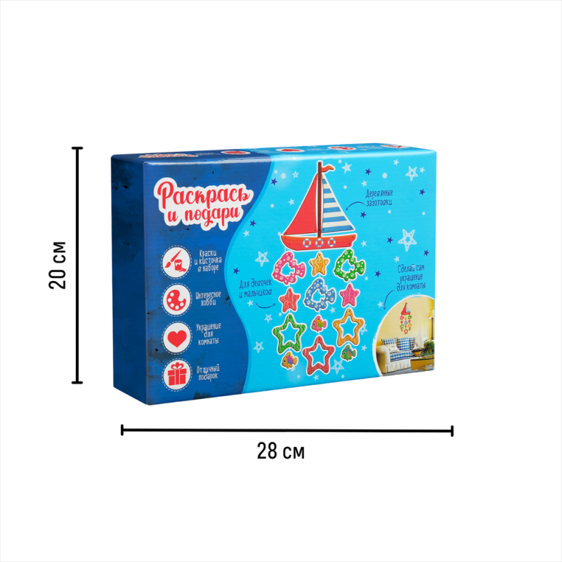 Пора отправляться в путешествие! Ну или хотя бы помечтать о нем. А с набором для творчества из серии Создай украшение для комнаты можно не только мечтать, но и создавать. Например, раскрасить парусник по своему вкусу, украсить его морскими звездами и красочными рыбками, а затем сделать оригинальный подвесной декор для интерьера или подарок близкому человеку. Современные технологии делают творчество удобным и интересным. В наборе для творчества уже есть все необходимые материалы для создания поделок. Деревянные заготовки, обработанные лазером, полностью готовы к работе. Любые краски и цвета хорошо лягут на гладкую поверхность. Раскрашивайте фигурки с двух сторон и сочетайте разные идеи и дизайны в одном сувенире. Соедините детали композиции шнуром в любом порядке и создайте подвесное украшение, которого больше нет ни у кого.