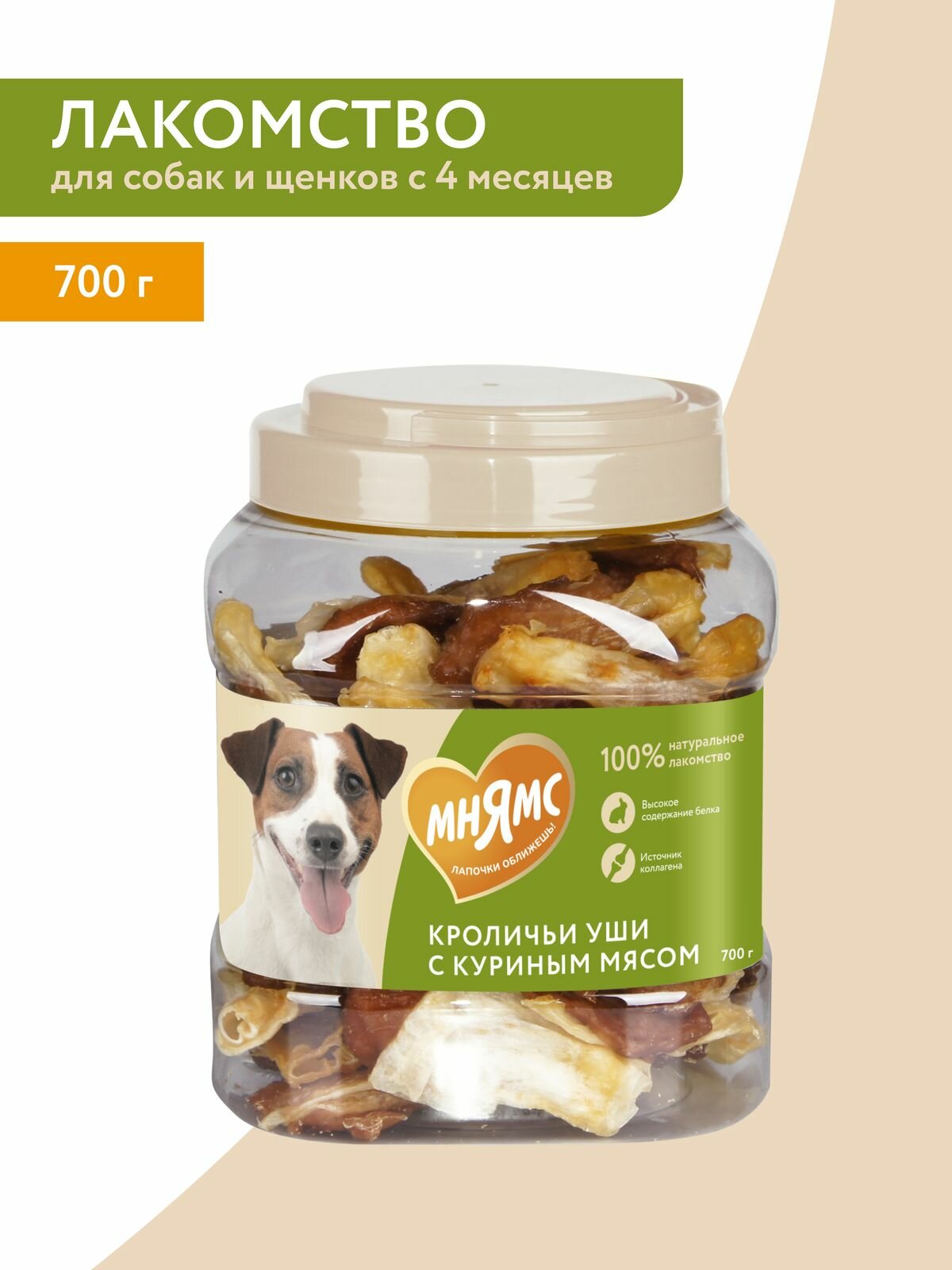 Мнямс лакомство для собак кроличьи уши с куриным мясом 700 г (702600)
