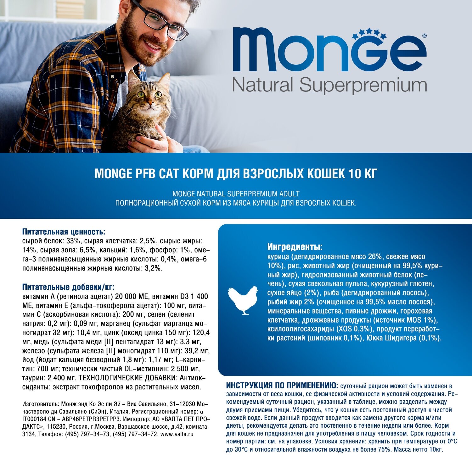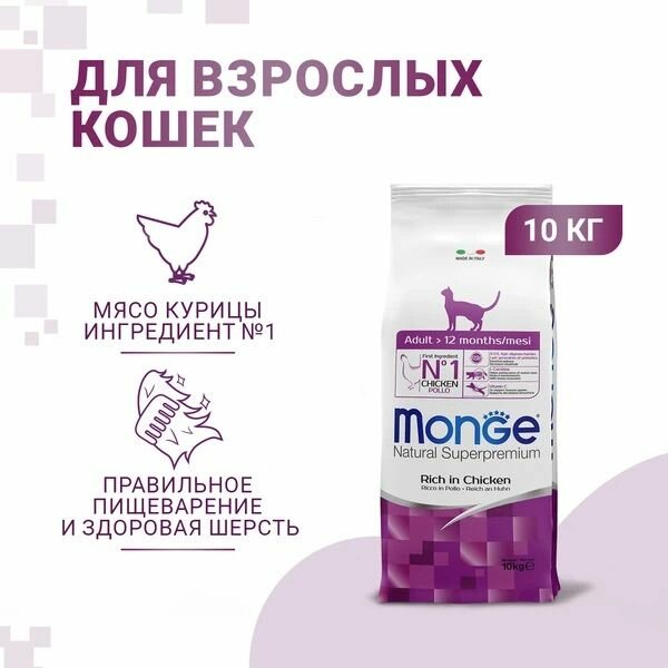 Сухой корм Monge для взрослых кошек курица 10кг Adult