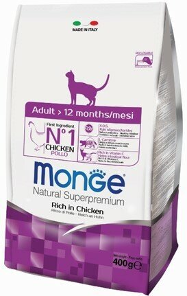 MONGE SUPERPREMIUM CAT - это полноценный сбалансированный рацион для взрослых кошек в возрасте от 1 года до 7 лет. Высокий уровень белка в составе корма и содержание в нем L-карнитина позволяет кошке долгие годы сохранять активность и хорошую физическую форму. Содержит важнейшие антиоксиданты, такие как витамин Е, для поддержания иммунной системы. Содержание X.O.S. помогает сохранить естественный баланс кишечной микрофлоры, способствует оптимальному усвоению питательных веществ и повышает иммунитет.