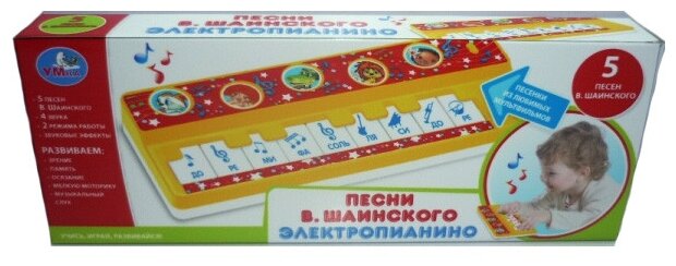 Пианино Умка на батарейках. Электропианино с песенками Шаинского несомненно понравиться малышу и его родителям. Яркая игрушка привлекает внимания. Режим песни, прослушает с ребенком 7 песен из мультфильма. Развивает мелкую моторику, познавательную и творческую активность, память, слуховое восприятие, артистизм. Сделано из прочного высококачественного пластика. Рекомендовано детям от 3-х лет. Работает при помощи 3 батареек типа АА (входят в комплект).