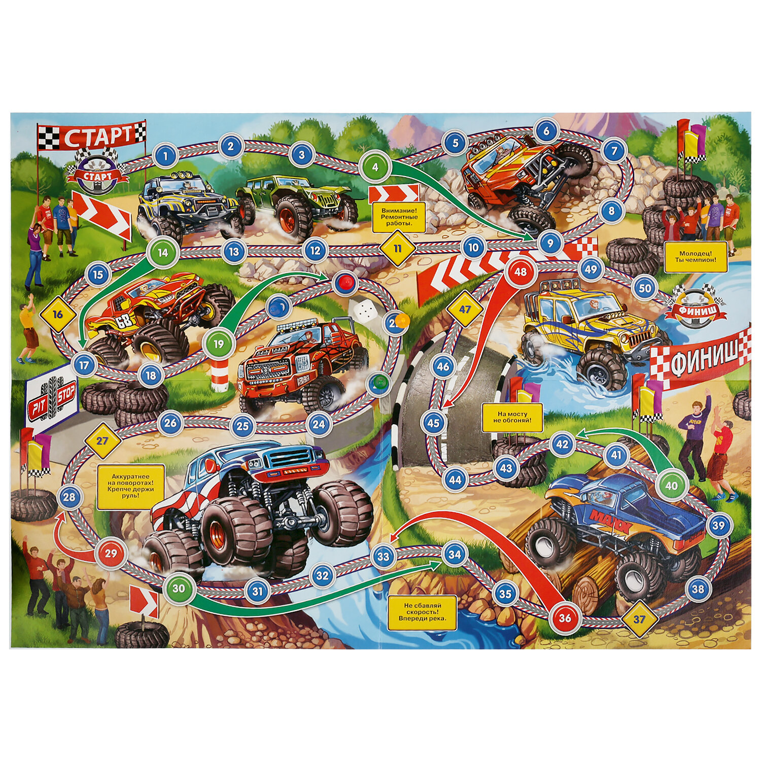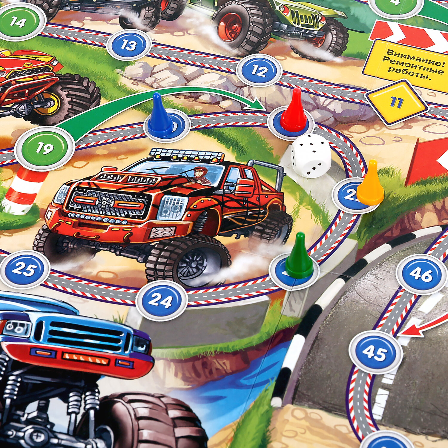 В Настольной игре-ходилке Умка Большие гонки очень важен не только выигрыш, но и проигрыш, ведь в раннем возрасте крохе надо объяснить, что не всегда получается так, как хочет он. Тем более в процессе этого развлечения все зависит лишь от удачи и того количества, которое выпадет на кубике. А яркие красочные иллюстрации создадут позитивный настрой и повеселят игроков. В наборе предусмотрено яркое игровое поле с красочными иллюстрациями, кубик и 4 фишки разных цветов. Игра выполнена в стиле Больших гонок, поэтому игровое пространство заполнено автомобилями. В игре могут принять участие от 1 до 4 детей. В процессе игры дети смогут научиться считать, совершая свой ход. Набор изготовлен из высококачественного пластика и плотного картона, которые абсолютно безопасны для детей и сертифицированы. Фишки и игровое поле окрашены яркими нетоксичными красителями, устойчивыми к истиранию и выгоранию. Материал пластик, картон. Рекомендовано детям от 3-х лет.