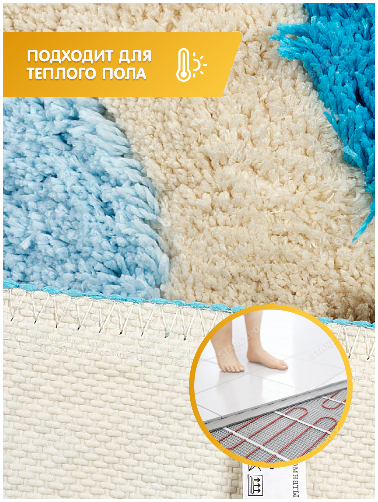 Коврик для ванной и туалета Dasch Лора - это ворсовый коврик с голубым и синим цветом, который идеально подходит для использования в ванной комнате и туалете. Коврик выполнен из высококачественной микрофибры, которая обеспечивает хорошую впитываемость влаги и не скатывается при стирке. Основание коврика выполнено из латекса, что делает его антискользящим и предотвращает скольжение по полу. Коврик имеет прямоугольную форму, что позволяет использовать его в любом месте ванной комнаты или туалета. Длина и ширина коврика составляют 100 см и 60 см соответственно, что обеспечивает достаточное пространство для комфортного использования. Этот коврик имеет массажный эффект благодаря высоте ворса в 3 мм. Он также легкий и весит всего 0,6 кг, что облегчает его транспортировку и хранение. Коврик Dasch Лора станет отличным дополнением к вашему интерьеру и поможет создать уютную атмосферу в ванной комнате или туалете.