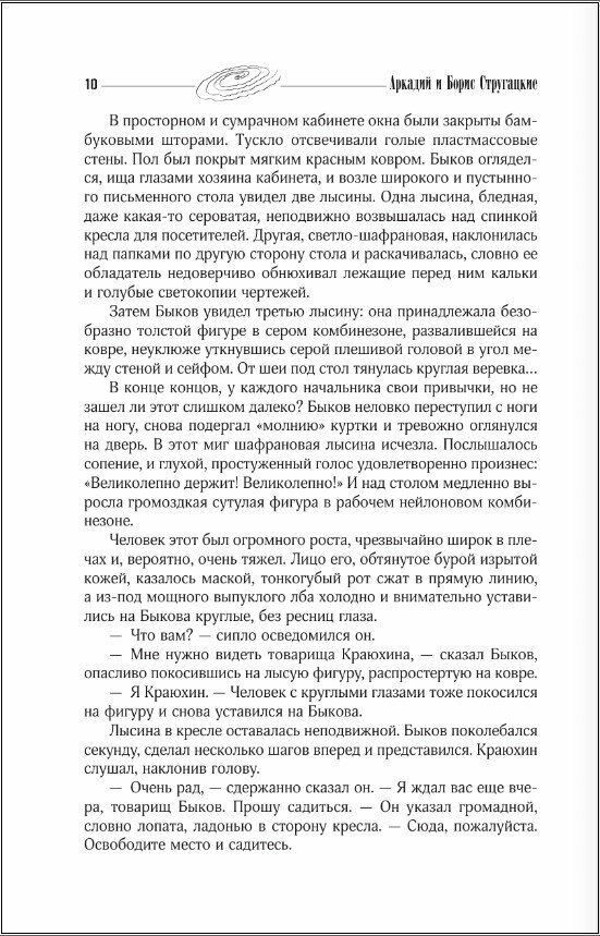 Стругацкие в рекламе не нуждаются, поэтому о самом издании: это, конечно, не коллекционные книги. Очень жаль, так как все-таки собрания сочинений рассчитаны на ценителей творчества, а не на чтение между делом на бегу. Листы тонкие, газетные, прозрачные. Непонятно, зачем при таком качестве печати ляссе. Обложка картонная, с тканевым корешком и золочеными буквами - без изысков. В итоге: на рынке какой-то непонятный дефицит Стругацких в приличных изданиях, поэтому смиритесь и покупайте либо что-то подобное, либо дикие по объему собрания сочинений с письмами, черновиками, всеми закорючками, сделанными авторами при жизни, и стоить это будет неадекватно.