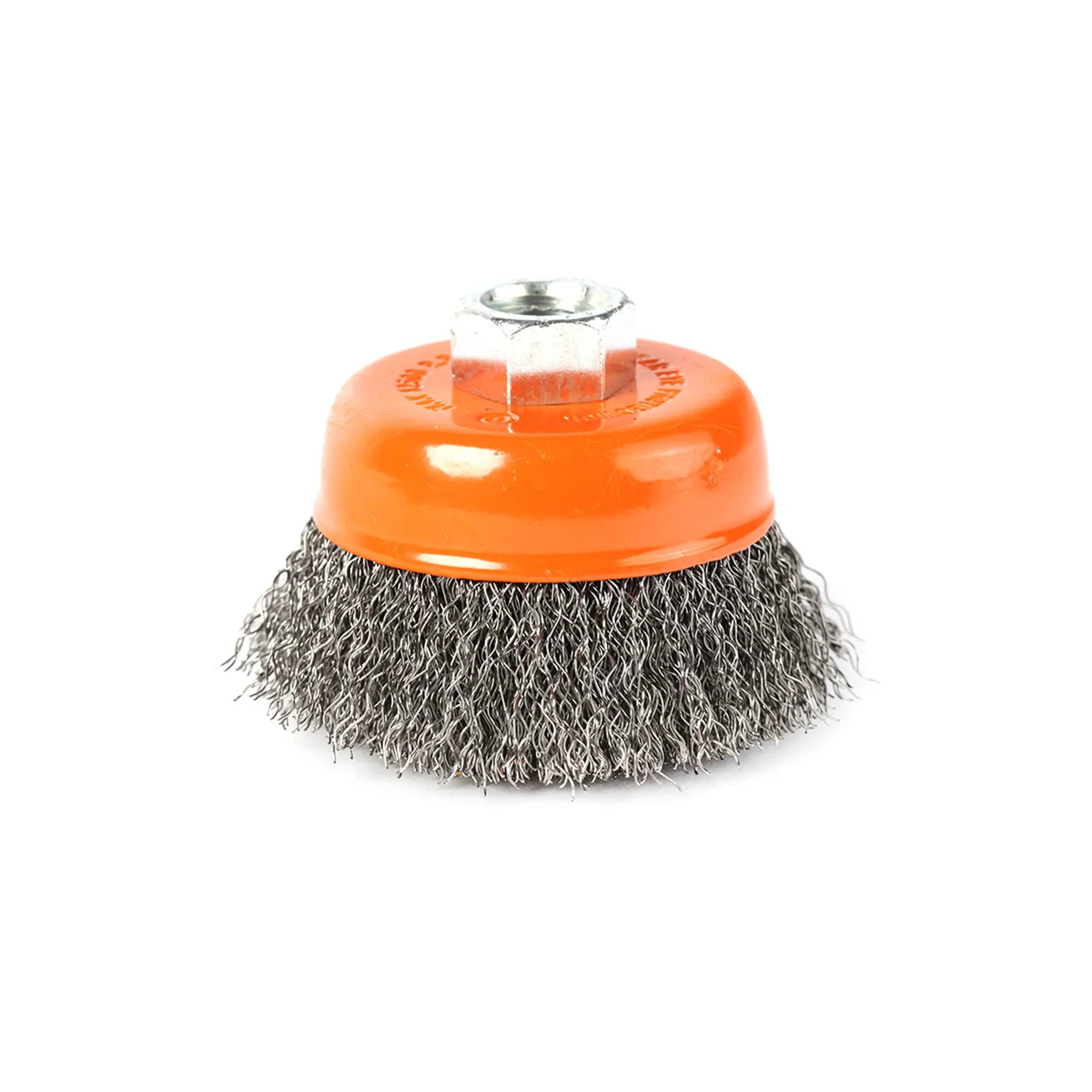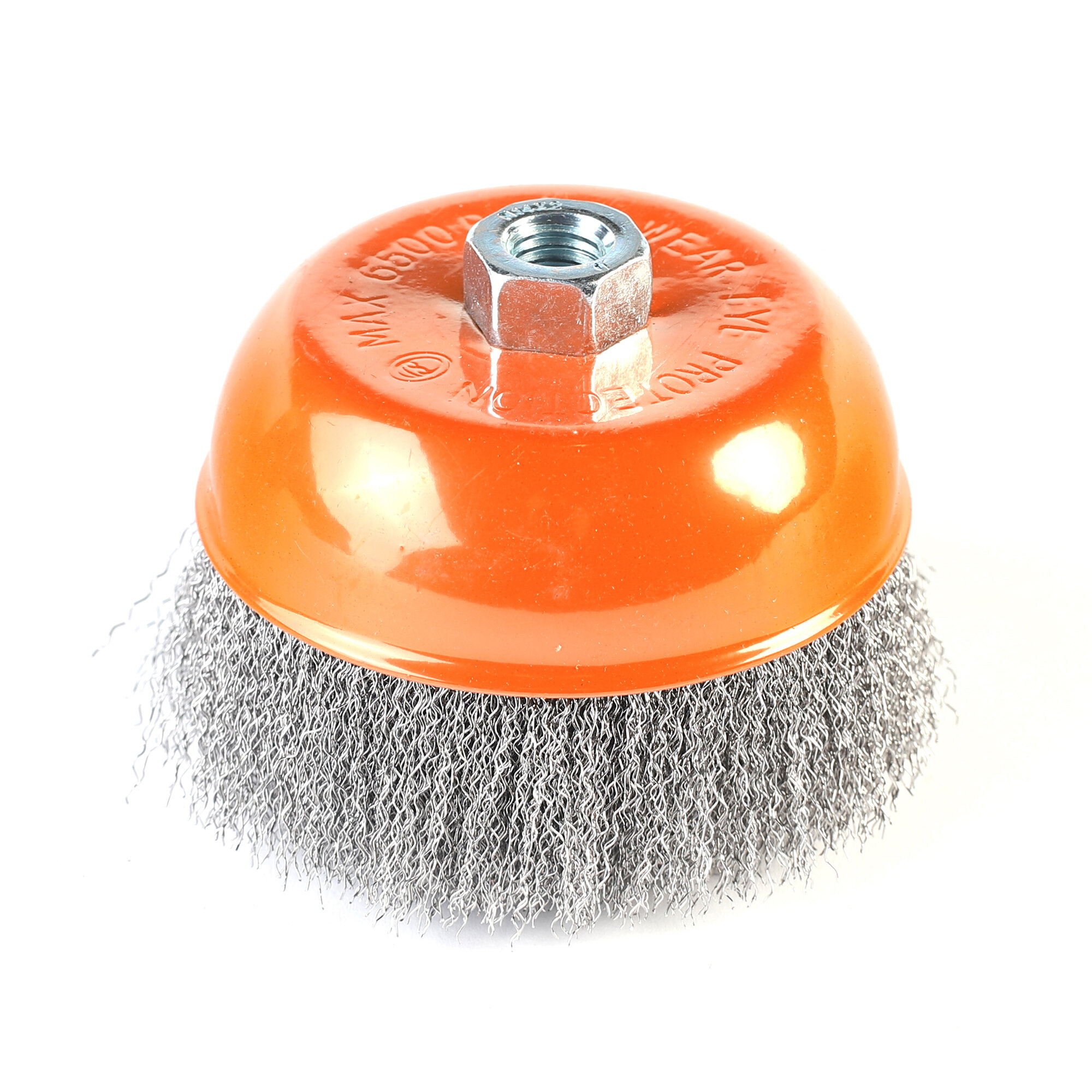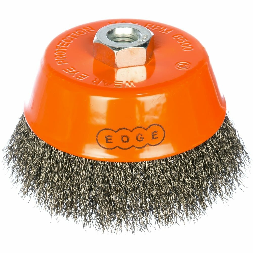 Щетка чашеобразная гофрированная EDGE by PATRIOT применяется совместно с угловыми шлифовальными машинами и предназначена для снятия лака, краски, зачистки от ржавчины различных поверхностей и изделий. Рабочая часть состоит из волнистой (гофрированной) стальной проволоки.