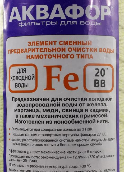 | Особенности | Рекомендуется при содержании растворенного железа до 2,5 мг/л. |