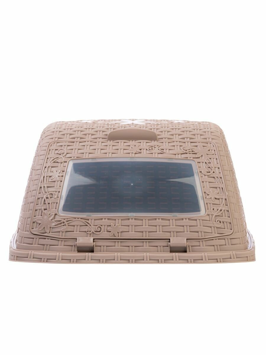 Хлебница «Плетёнка» позволяет сохранить свежесть и мягкость хлебобулочных изделий. Откидная крышка на защёлке удобна для частого открывания и закрывания изделия. Поэтому эту хлебницу можно использовать в местах общественного питания. Прозрачное окошко на крышке позволяет видеть содержимое хлебницы. Изделие изготовлено из качественного пластика, разрешённого для контакта с пищевыми продуктами.