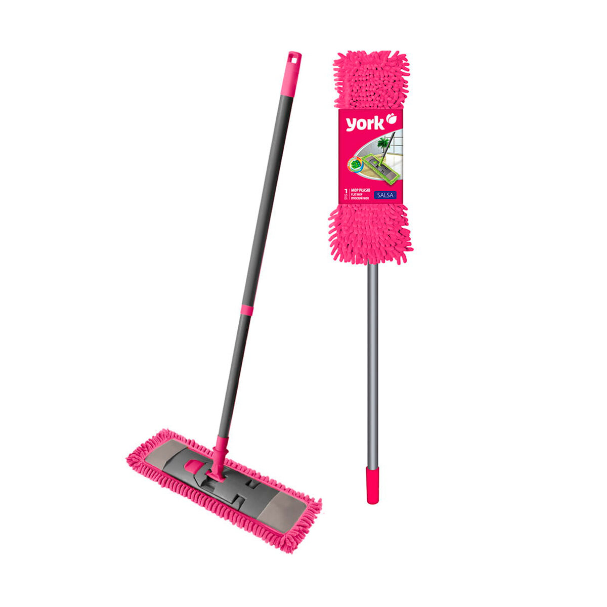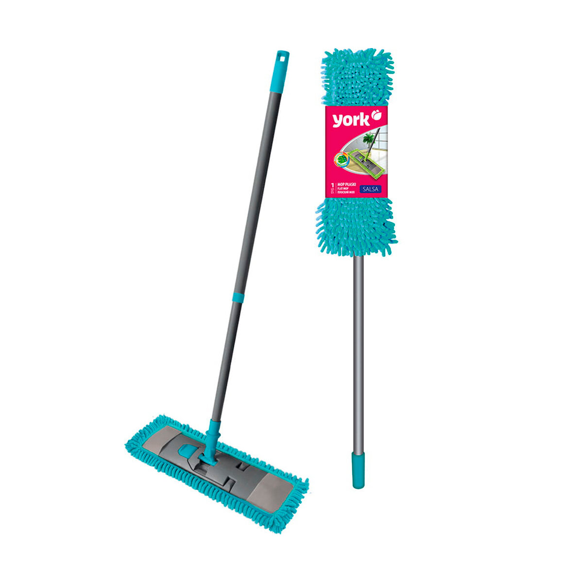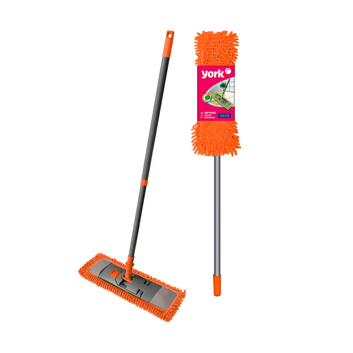 Швабра замечательная, служит мне уже несколько лет верой и правдой. Выбирала я ее долго. Хотелось подобрать швабру качественную, которая прослужит не один год и чтоб по цене не очень дорогая была. Пересмотрела кучу всяких предложений и решила остановится на York Сальса. Удобная, легкая, маневренная. Выполнена из качественного пластика и металлической рукояти которая в середине раздвигается. Ей очень удобно мыть полы. Великолепно моет полы и под кроватью, и под шкафами, и на открытом пространстве. Компактная в сложенном виде, легко хранить, занимает совсем немного места. Крепкая рукоятка, надежные механизмы крепления рукоятки и насадки. Насадка надежная с ребрами жесткости с обратной стороны. Моп легко одевать и снимать, широкая клипса-застежка плотно держит и легко открывается. Я очень довольна своей помощницей-красавицей.