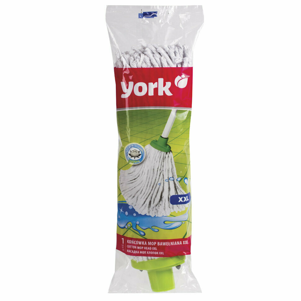 Насадка сменная для швабры York XXL, выполненная из пластика, хлопка, вискозы и полиэстера, подходит для мытья всех видов напольных поверхностей. Изделие имеет свойство впитывать большое количество влаги. Не оставляет ворсинок и разводов. Форма насадки позволяет справиться с труднодоступными загрязнениями.