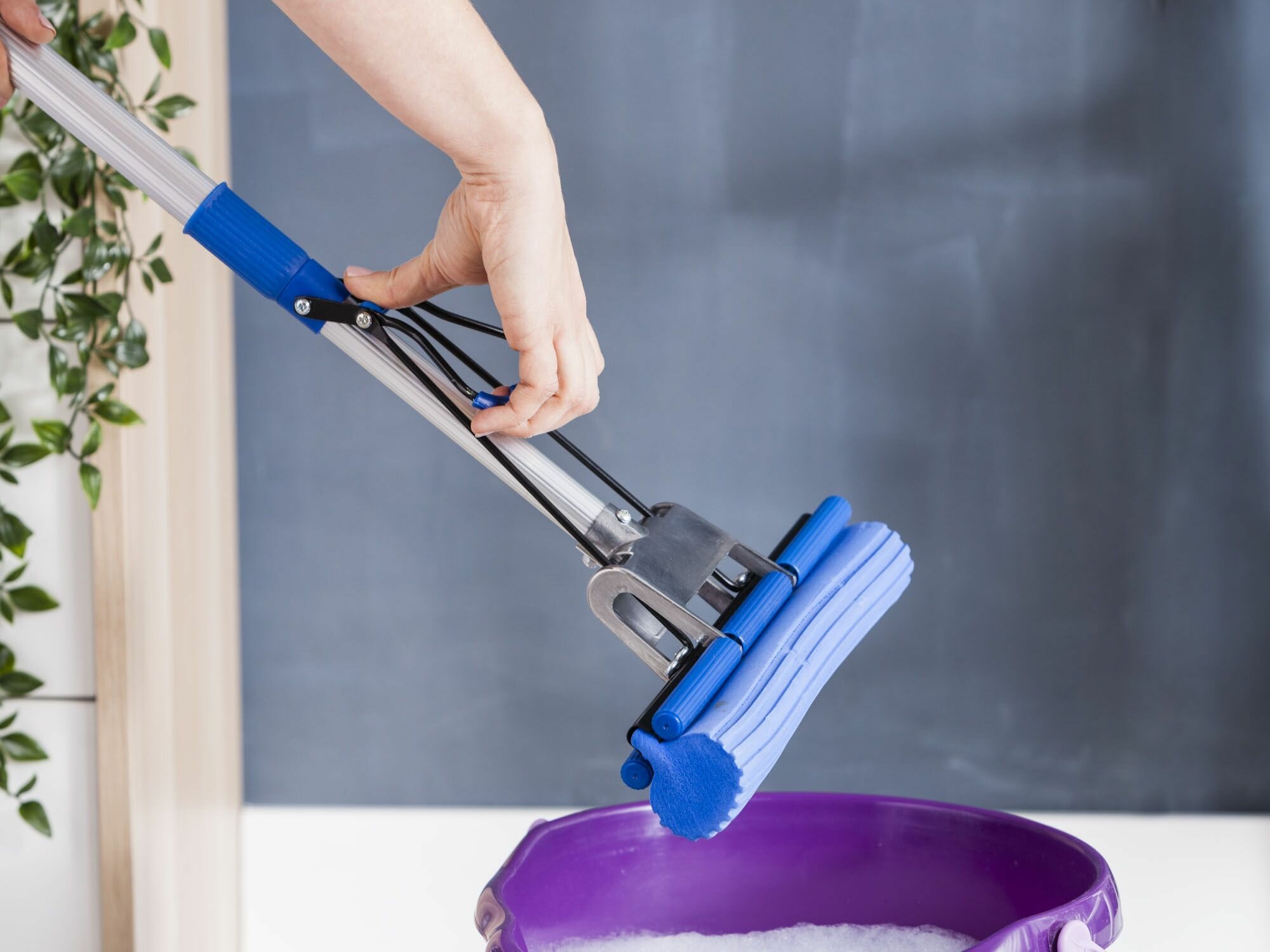Швабра York Top с функцией отжима предназначена для влажной уборки в доме. Насадка швабры изготовлена из губчатого материала, который размягчается при контакте с водой. Система отжима позволяет эффективно отжимать воду, сохраняя руки чистыми и сухими. Насадка имеет специальную форму для легкого и качественного мытья полов, в том числе в труднодоступных местах. Рукоятка швабры выполнена из металла, специальный рельеф обеспечивает надежный хват и комфорт во время эксплуатации. Рукоятка телескопическая, то есть регулируется по длине. Имеется специальное отверстие, благодаря которому швабру можно подвесить в любом удобном месте. Современная и удобная швабра позволит быстро и легко вымыть пол.