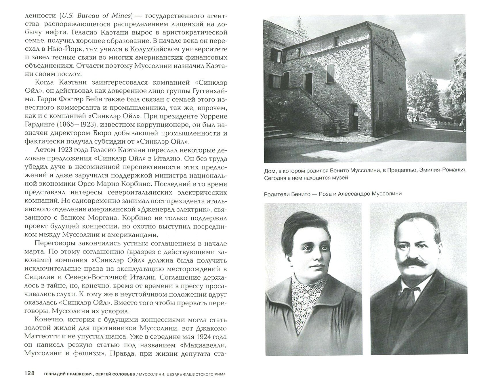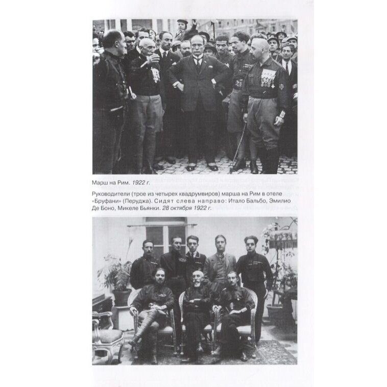 Например цитата из статьи в "Таймс", что дуче снизил безработицу, сократил дефицит бюджета, улучшил коммунальное обслуживание населения, но как он это сделал, об этом авторы не пишут ни строчки. Видимо подходящей цитаты не нашлось, а своих мыслей на этот счет не возникло.