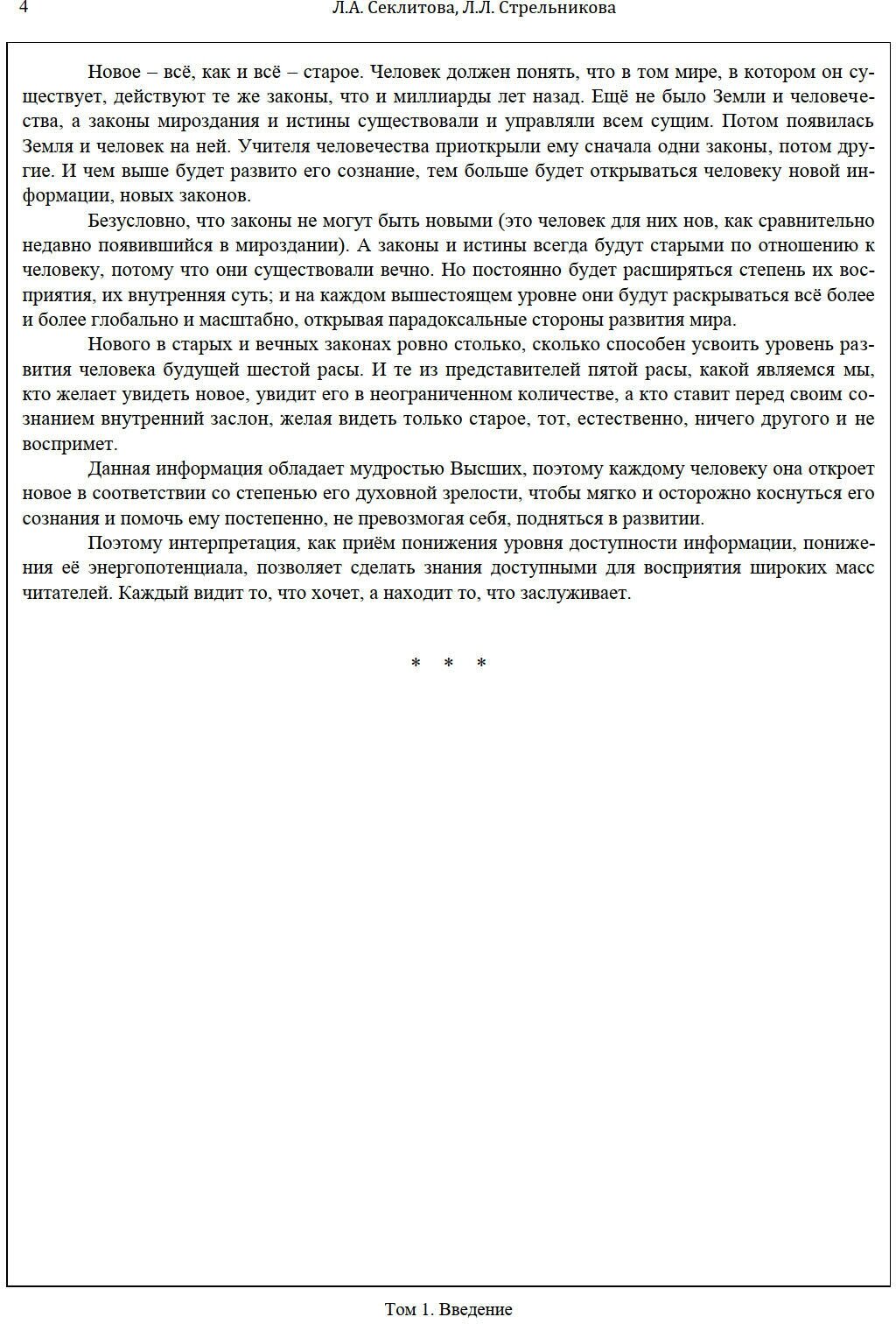 Вниманию читателей представлен, пожалуй, самый знаковый труд Л. А. Секлитовой и Л. Л. Стрельниковой - авторов, через которых Высшие Сферы передают человечеству уникальные знания о бытии, строении мира, предназначении каждого существа и многом другом. Общеизвестные философские истины в этой книге рассматриваются с самых неожиданных сторон. Здесь дается информация о тайнах добра и зла, раскрывается неизвестная часть временных фаз, повествуется о развитии индивидов в отрицательных и положительных космических Системах. То, что заложено в данной книге, сложно воспринять и осознать, опираясь на старые и уже отжившие понятия: это информация будущего. Но когда вы осмыслите ее, ваше привычное представление о мире рухнет, и на смену ему придет обновленное, чистое и мудрое видение всего сущего.