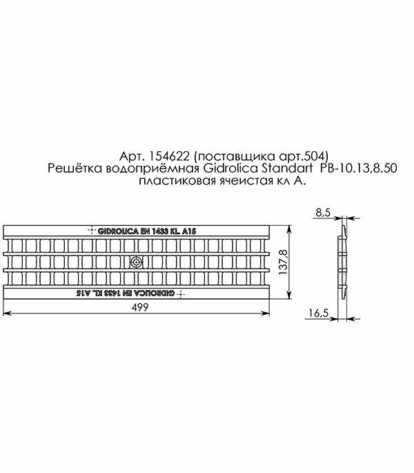 Модель: Решетка к лотку Gidrolica пластик 0,5 м