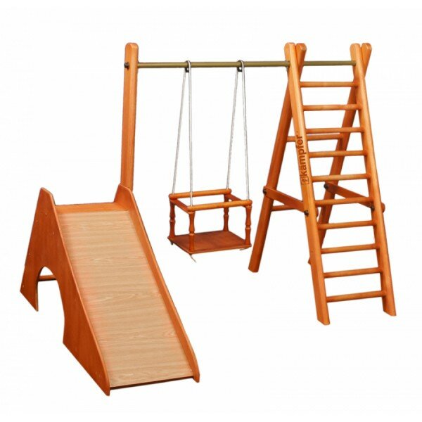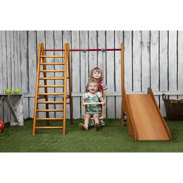 Детям очень нравится играть на таком комплексе: лазить по лесенке и качаться на качелях, кататься на горке. Но главная задача Kampfer Kitty — это развитие физического здоровья с самого детства. Подходит для детей в возрасте от 7 месяцев до 4 лет, устанавливается в домашних условиях и в детских учреждениях.