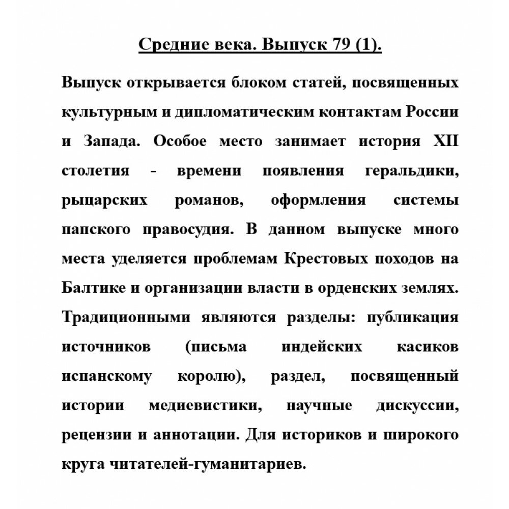 Средние века. Выпуск 79 (1) (Группа авторов); Наука, 2018