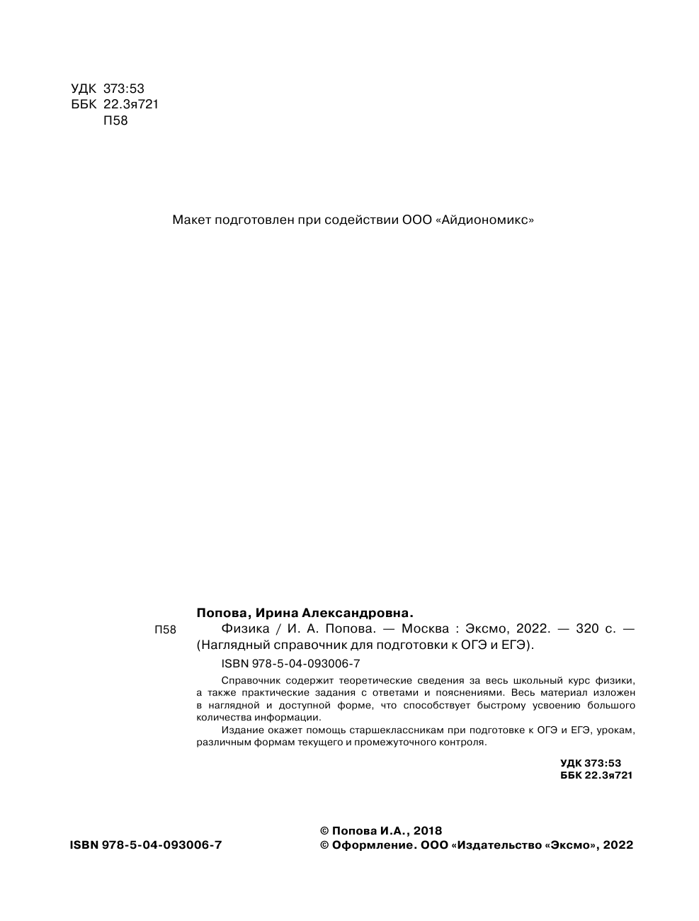 Книга: Физика (Попова Ирина Александровна); ООО "Издательство "Эксмо", 2018