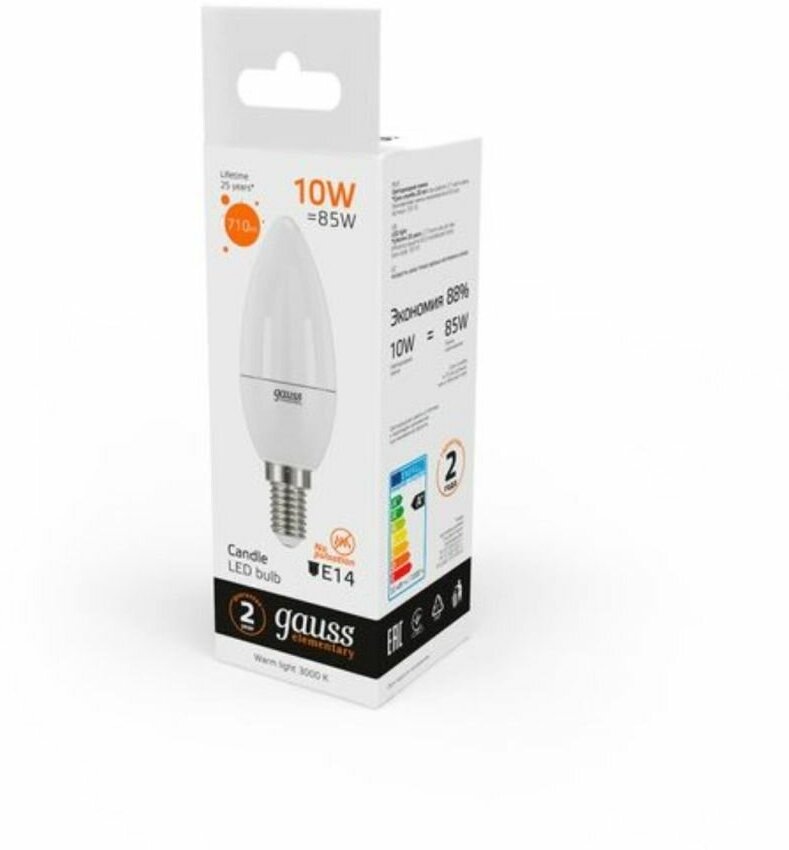 Светодиодные лампы Gauss Elementary Candle созданы в форме свечи. Лампы подойдут как для домашнего, так и для коммерческого использования. Такой тип освещения прекрасно смотрится в светильниках без плафонов или устанавливается в люстры и бра. Модель обладает широким диапазоном цветовых температур и мощностей, что поможет создать атмосферу тепла и уюта или концентрации. Равномерный спектр света создает зрительный комфорт в любом помещении. Данный тип освещения от Gauss обеспечивают стабильную работу в течение всего срока службы.
