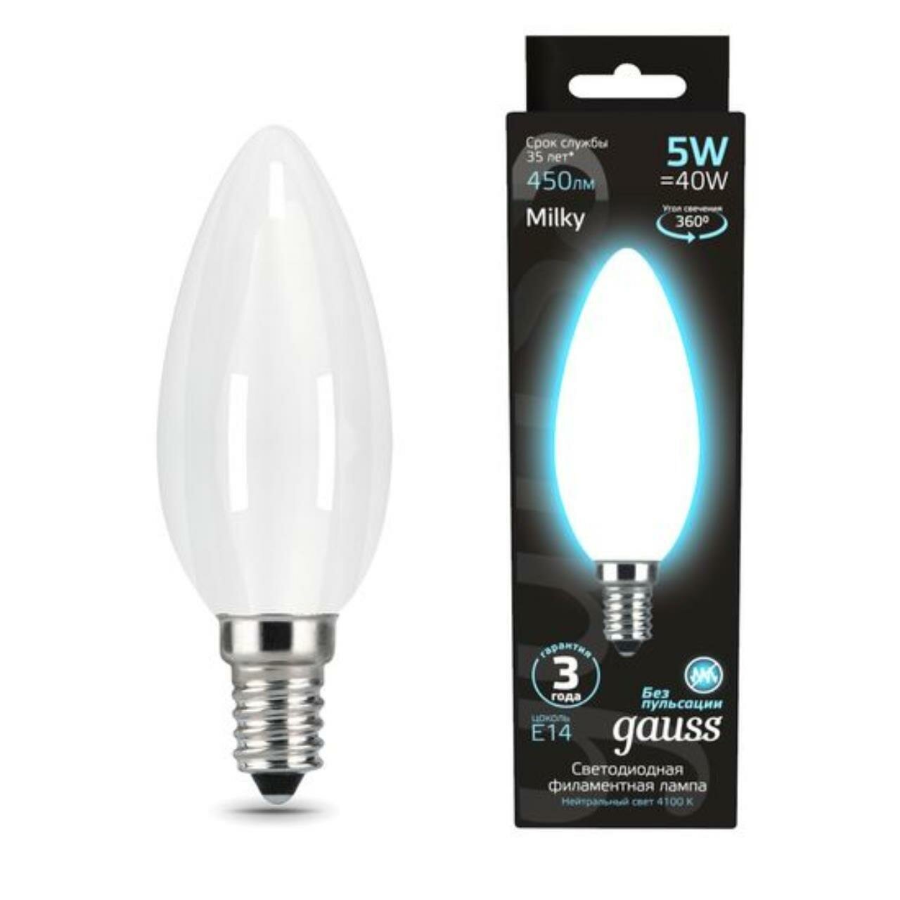 **Лампа светодиодная Gauss Filament Milky** применяется для декорирования домашнего интерьера, а также кафе, ресторанов, гостиниц, галерей, витрин и прочих помещений. Очень востребованы в индустрии фото-видео съемки. Главная особенность - равномерное освещение пространства мягким светом, не слепящим глаза.