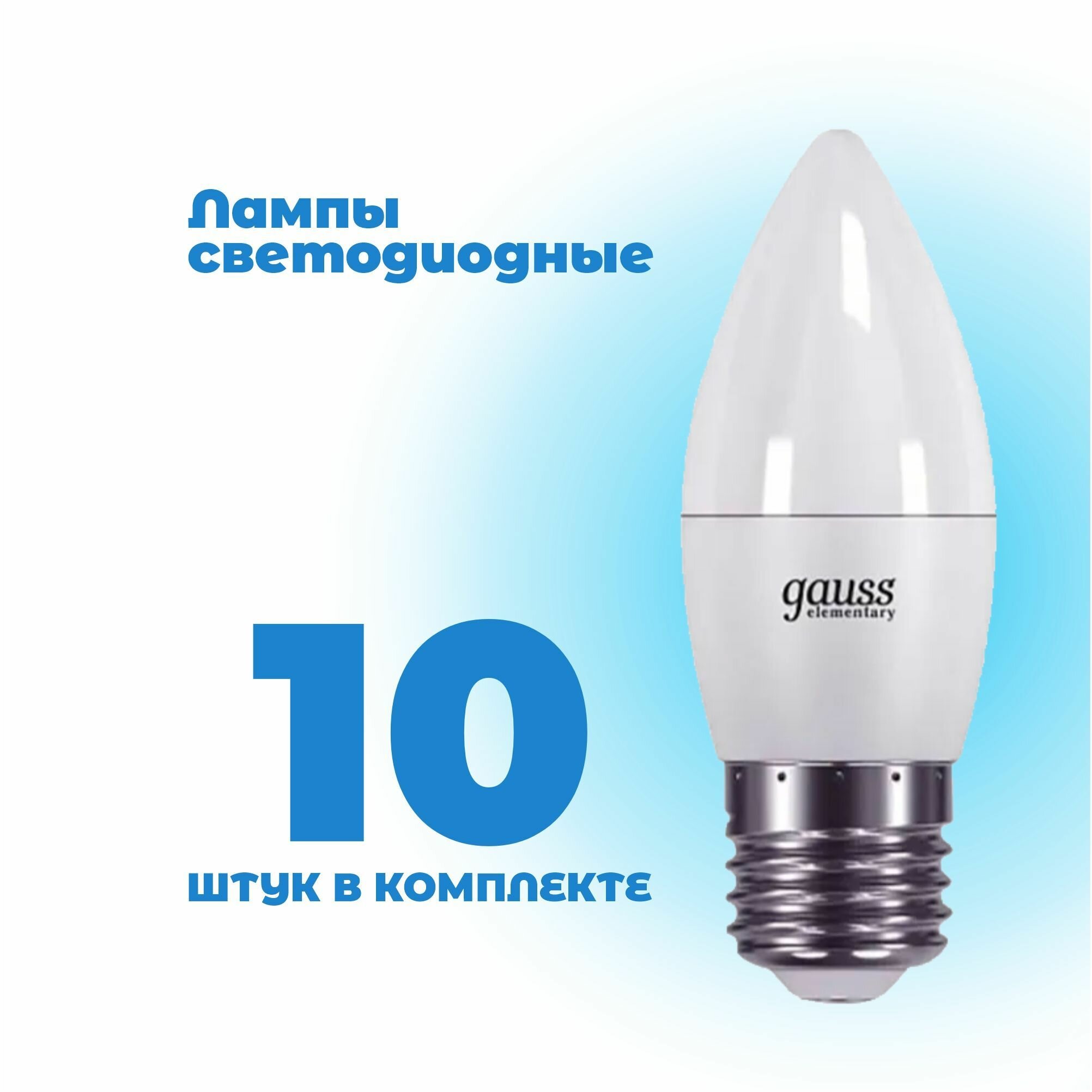 Gauss Светодиодные лампы Gauss Elementary - это безопасный, инновационный и экологически чистый источник света, который позволяет экономить до 89% электроэнергии по сравнению с аналогичной по световому потоку лампой накаливания. Данная модель предназначена для основного и акцентного освещения интерьеров внутри помещений. Лампы Gauss Elementary изготовлены по европейским стандартам и относятся к классу энергоэффективности А+.
