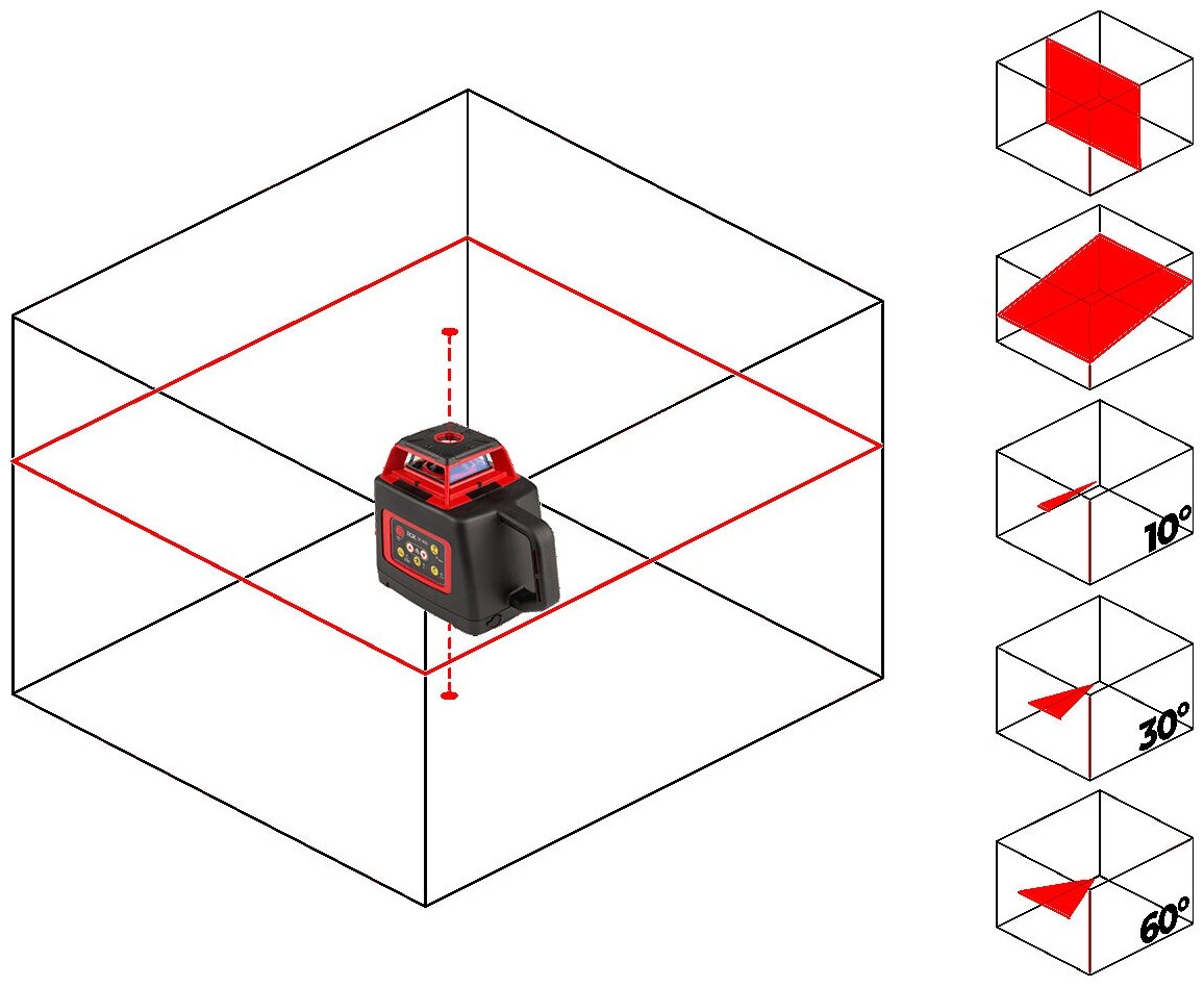 | Комплектация | Нивелир Лазерный приёмник с креплением Пульт ДУ Трегер Мишень Очки для работы с лазером Перезаряжаемые батареи и зарядное устройство Инструкция Пластиковый кейс |