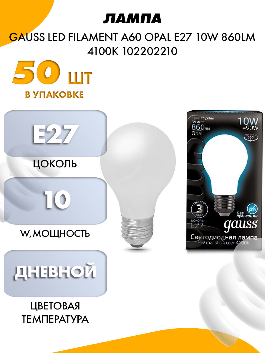 Лампа светодиодная груша Gauss E27 10W 4100K