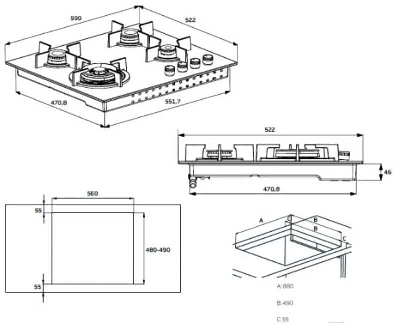 | Комплект поставки | Встраиваемая газовая панель, документация |