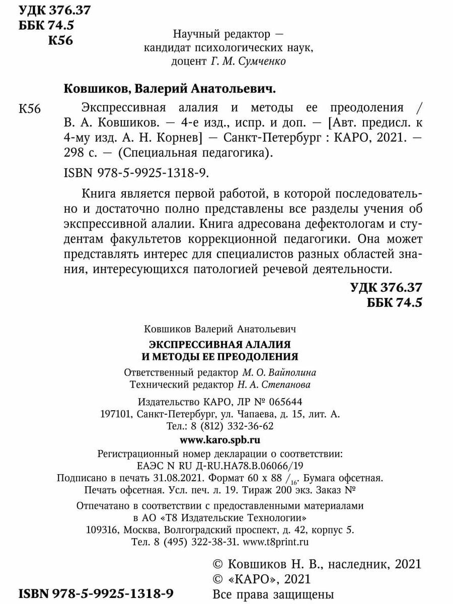 Экспрессивная алалия и методы её преодоления (Ковшиков Валерий Анатольевич); Каро, 2023