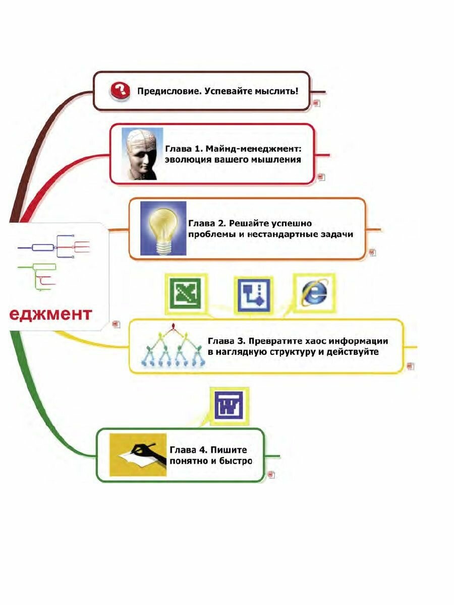 Книга будет особенно полезна тем, кому необходима программа по составлению карт, например, для работы, так как в книге очень понятно и с картинками объяснено очень много функций программы Mind Manager. -