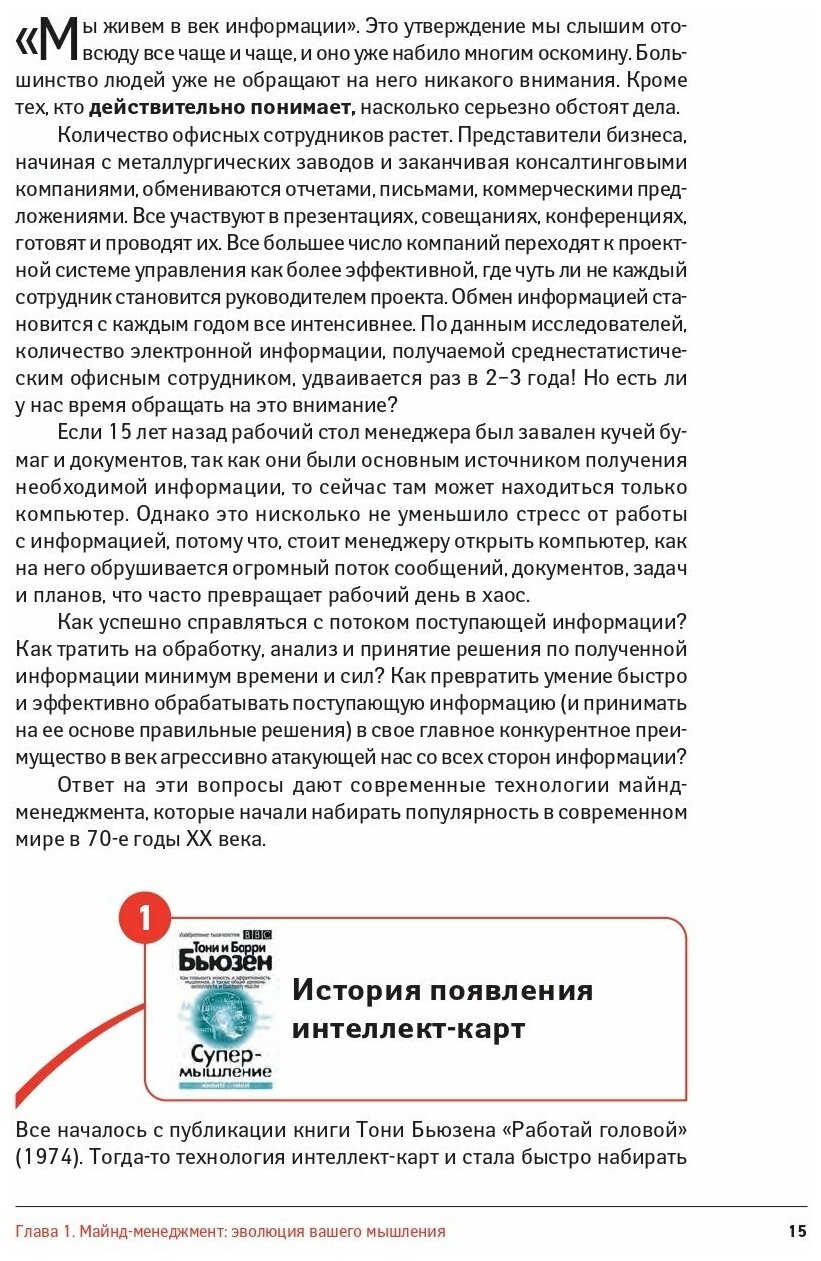 Правильная книга для тех, кто хочет использовать интеллект карты в работе, учебе, повседневной жизни и бизнесе. Минимум воды, максимум примеров и практических решений использования. Предыдущее издание мне нравилось несколько больше, но и после прочтения этого можно начать "работать" не откладывая дела в долгий ящик и получать преимущество от использования этого инструмента.
