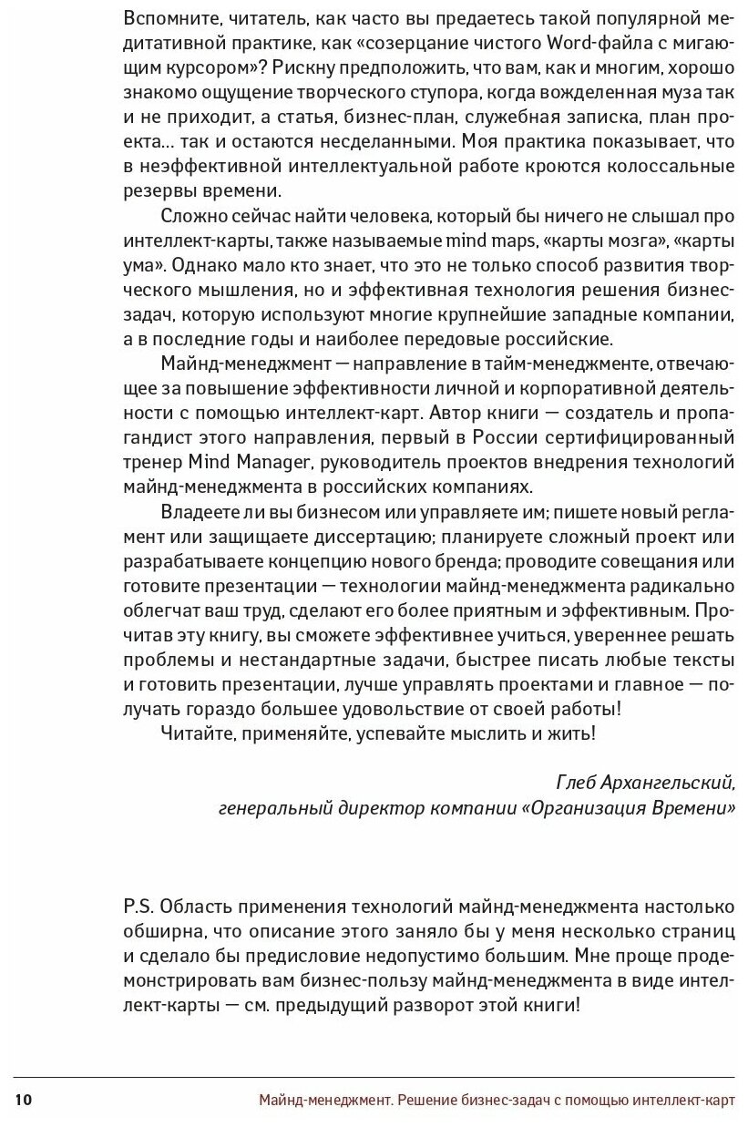 О чем книга «Майнд-менеджмент: Решение бизнес-задач с помощью интеллект-карт»Книга впервые знакомит российского читателя с новой методикой — применением интеллект-карт (карт ума), а также программы Mind Manager, для решения практических задач. В ней читатель знакомится с историей появления интеллект-карт, демонстрируются правила их формирования и способы графического воспроизведения в бумажном и электронном виде. На простых и доступных для понимания практических примерах автор доказывает эффективность подобного способа предоставления информации, основанного на главных принципах работы человеческого мозга. Почему книга «Майнд-менеджмент» достойна прочтенияВ книге дается описание технологии майнд-менеджмента — эффективного способа представления любой, даже самой сложной информации, в максимально понятном и наглядном виде.Автор книги, основываясь на богатом практическом опыте, показывает, чем и как заменить неэффективную интеллектуальную работу, используя скрытые в ней колоссальные резервы времени.Книга заинтересует широкий круг читателей — владельцев бизнеса, управляющих компаниями, авторов диссертаций и создателей новых регламентов, проектов или концепций, организаторов проведения совещаний и подготовки презентаций.Усвоение и применение на практике изложенного в книге материла способно радикально облегчить труд, сделав его более приятным и эффективным.Сергей Бехтерев — создатель и пропагандист технологии майнд-менеджмента,руководитель многочисленных проектов внедрения технологий этого направления в российских компаниях, первый в России сертифицированный тренер Mind Manager.