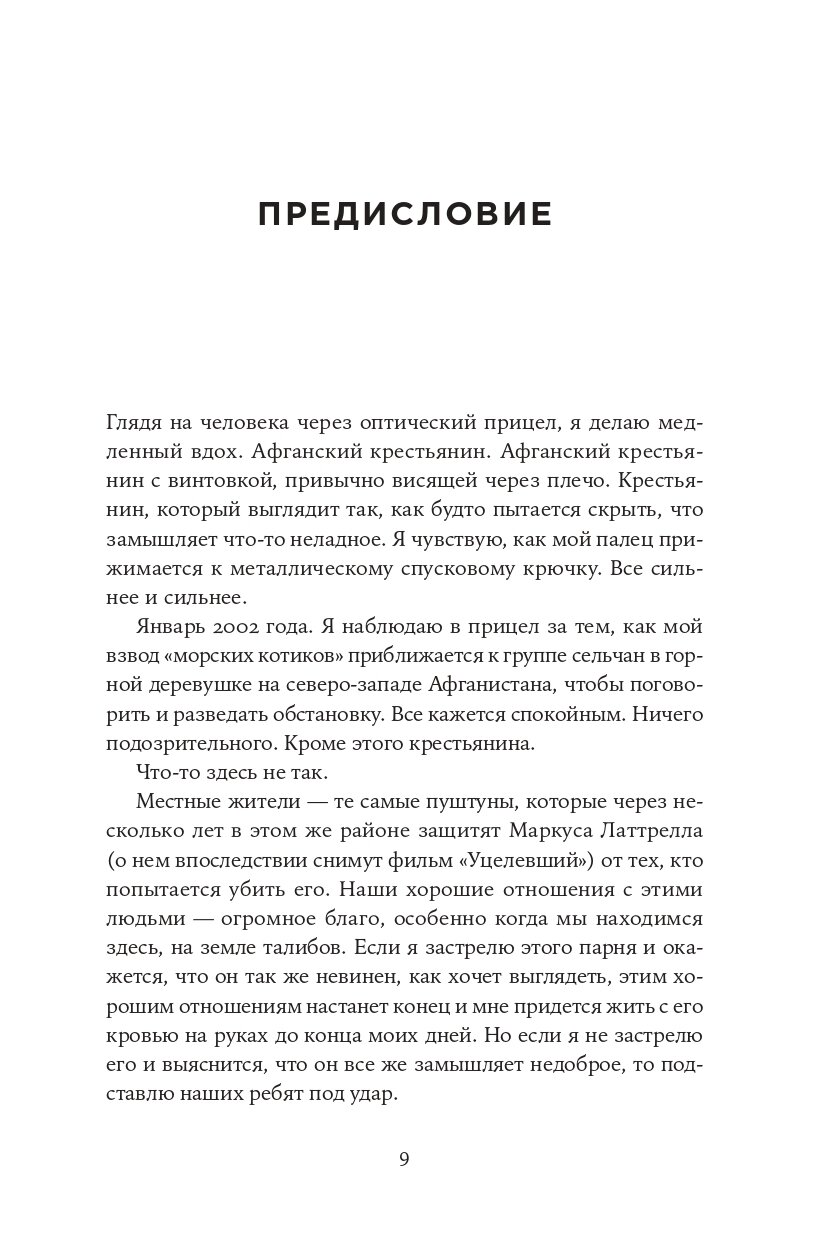 Вас может удивить, что бывший снайпер подразделения «морских котиков» написал бизнес-книгу. Но в этом нет ничего странного. Бойцы отрядов особого назначения обладают навыками, которые, во-первых, помогают им успешно справляться с заданием, а во-вторых, чрезвычайно эффективны не только на войне, но и в бизнесе. Спецназовцев безжалостно тренируют, чтобы они научились приспосабливаться, могли решать проблемы нестандартно и при любых обстоятельствах.