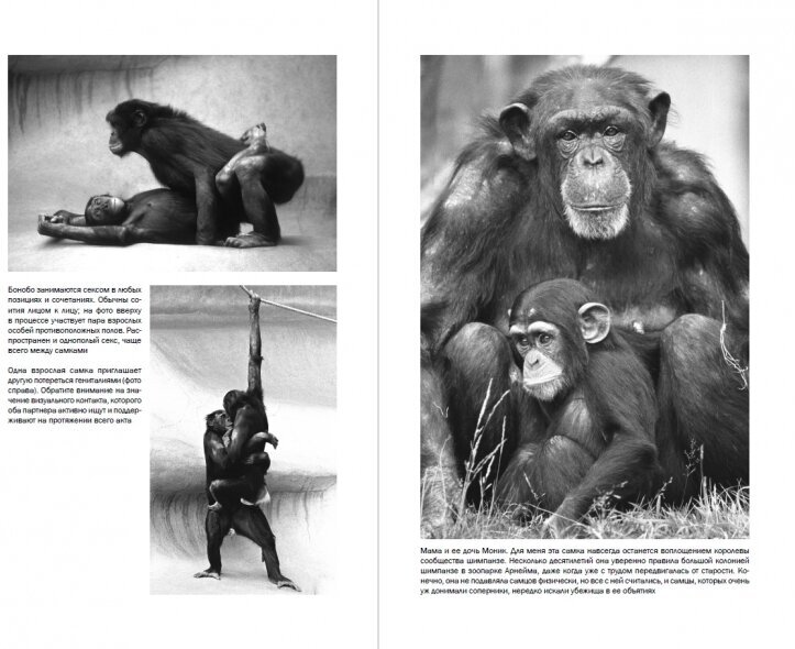 Я могла бы бесконечно, захлёбываясь в заглавных буквах-восклицательных знаках-подчёркивании, перечислять Вам опыты, эксперименты, наблюдения и исследования, которое проводил де Вааль. Они настолько удивительны! И меня переполняет радость познания от прочитанного. Основным научным объектом последних лет у ученого стали обезьяны рода Бонобо. Возможно, это та самая последняя ступень в эволюции перед Человеком Разумным. Эти животные обладают наиболее выраженной эмпатией и по составу ДНК ближе к нам. Они способны сочувствовать, помогать не родственным особям, выражать благодарность друг другу и к людям, глубоко переживать из-за причинённых и нанесённых обид, находить выход из сложных ситуаций, ухаживать за умирающими и пожилыми, осознавать смертность и старость, обучать молодых особей, мудро выстраивать иерархию в группах, адаптироваться к новым условиями и даже иметь зачатки религии! Все это подтверждено строго научными экспериментами. У меня полностью перевернулось представление об эволюции и антропологии, и, думаю, заняло правильное положение. Я разделяю точку зрения автора почти по всем поднимаемым вопросам. Возможно, не правильно было писать отзыв в порыве восторга и он не несёт в себе должной информативности. Но эта книга многое упорядочила на полочках в моем сознании и повесила туда новые, озаглавив ещё более интересными темами, которые мне только предстоит заполнить. И я рада поделиться этим открытием с вами)