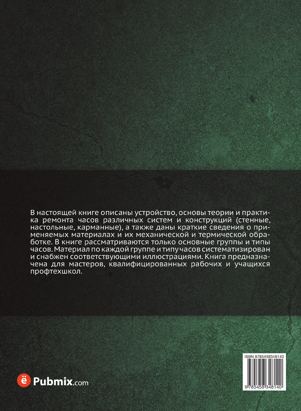 В настоящей книге описаны устройство, основы теории и практика ремонта часов различных систем и конструкций (стенные, настольные, карманные), а также даны краткие сведения о применяемых материалах и их механической и термической обработке.В книге рассматриваются только основные группы и типы часов. Материал по каждой группе и типу часов систематизирован и снабжен соответствующими иллюстрациями.Книга предназначена для мастеров, квалифицированных рабочих и учащихся профтехшкол.