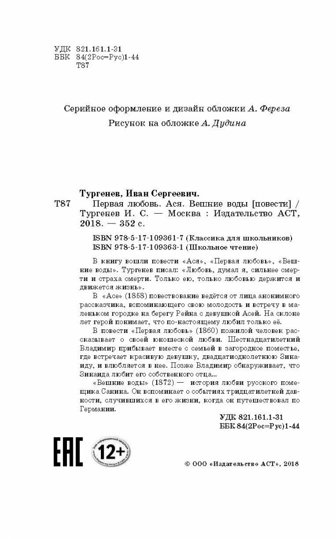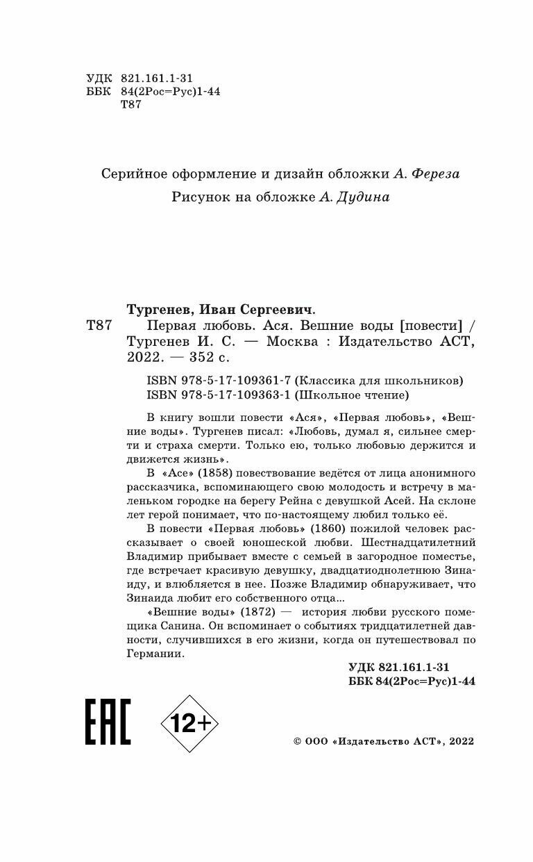 Книга: Первая любовь (Иван Сергеевич Тургенев); АСТ, 2024