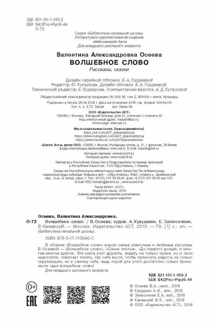 Книга: Волшебное слово (Осеева Валентина Александровна); ИЗДАТЕЛЬСТВО "АСТ", 2018